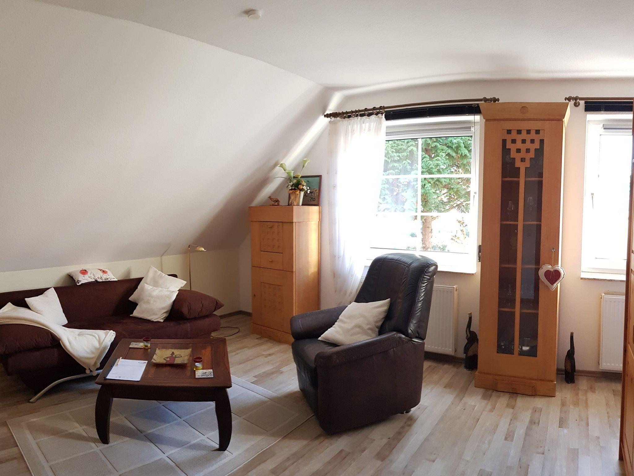 Unser wunderschönes Appartement erreichen Sie über einen separaten Eingang im Obergeschoß unseres Einfamilienhauses. Es verfügt über einen geräumigen Wohn-und Schlafraum mit TV, eine gut ausgestattete Küche mit Essplatz für bis zu drei Personen und ein Badezimmer mit Duschwanne/ WC. Der Wohnbereich lädt mit einem Zweiersofa (als Schlafcouch für eine dritte Person nutzbar) und einem Liegesessel,Kuscheldecken, Fernseher,einer interessanten Bücherauswahl und CD-Player zum Verweilen und Entspannen ein. WLAN nutzen Sie bei uns sebstverständlich kostenfrei.