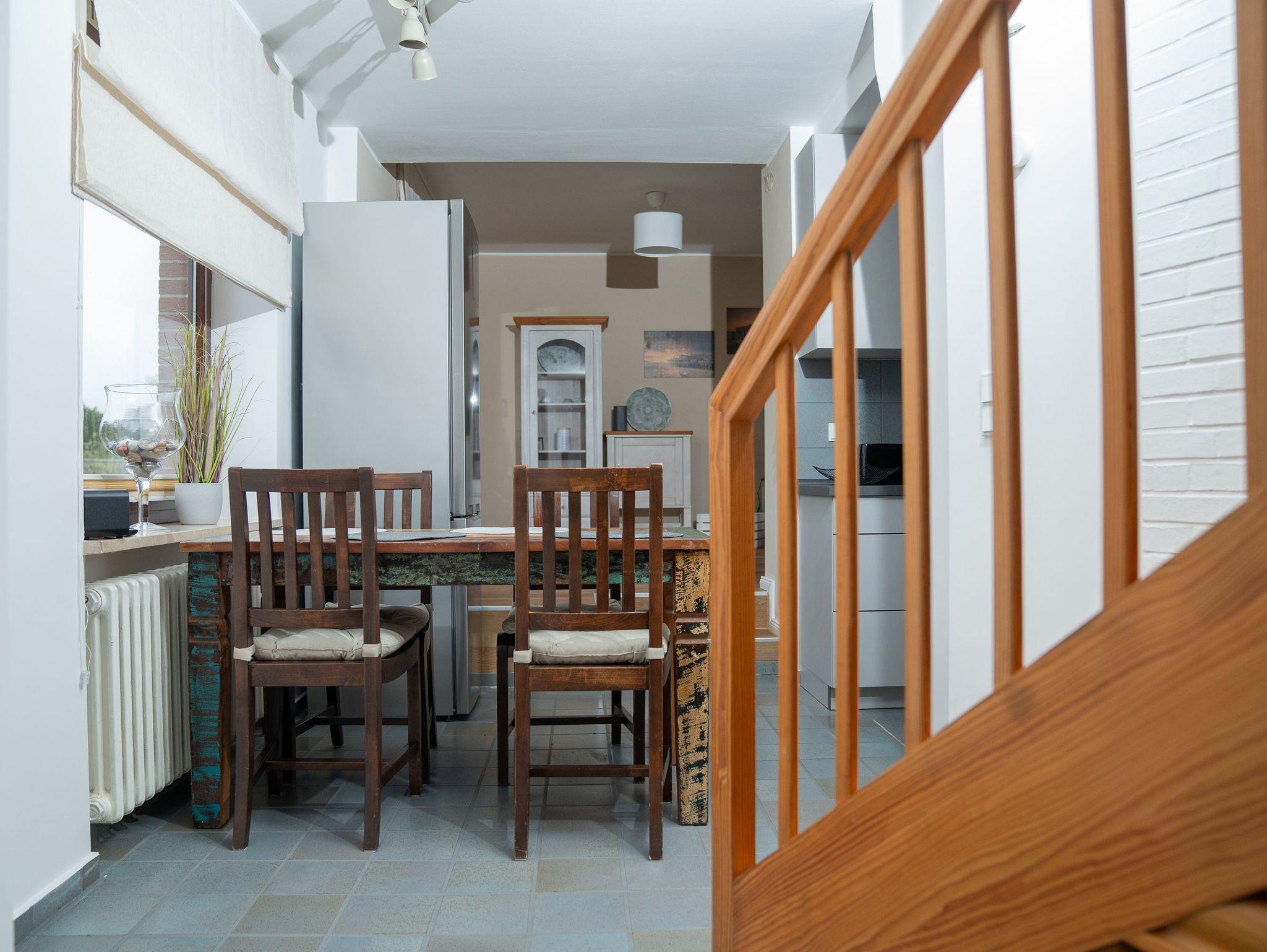 Im Erdgeschoss findet man die komplett ausgestattete Küche, ein modernes, helles Wohnzimmer, den Essbereich für 4 Personen und ein Gäste-WC.