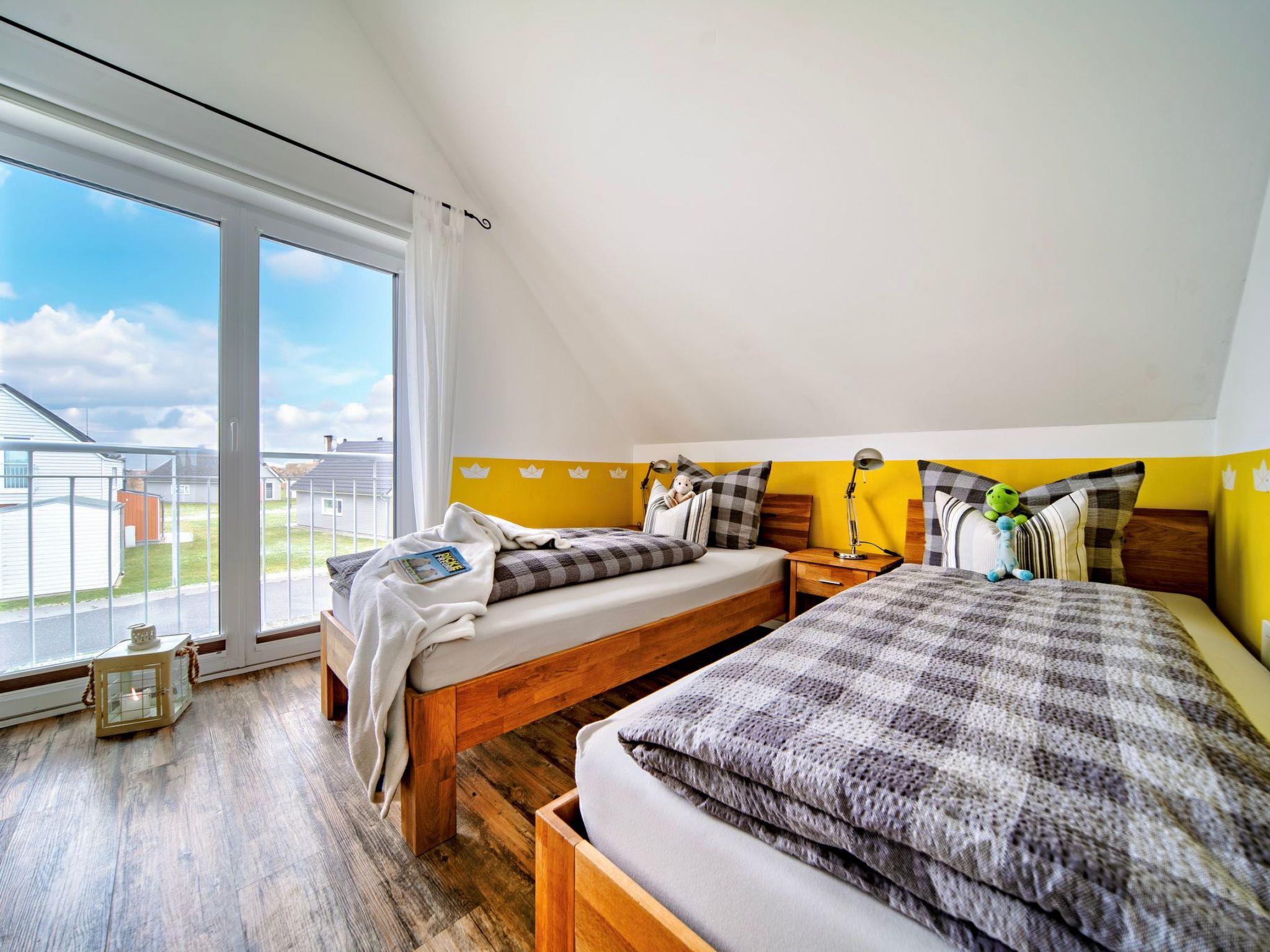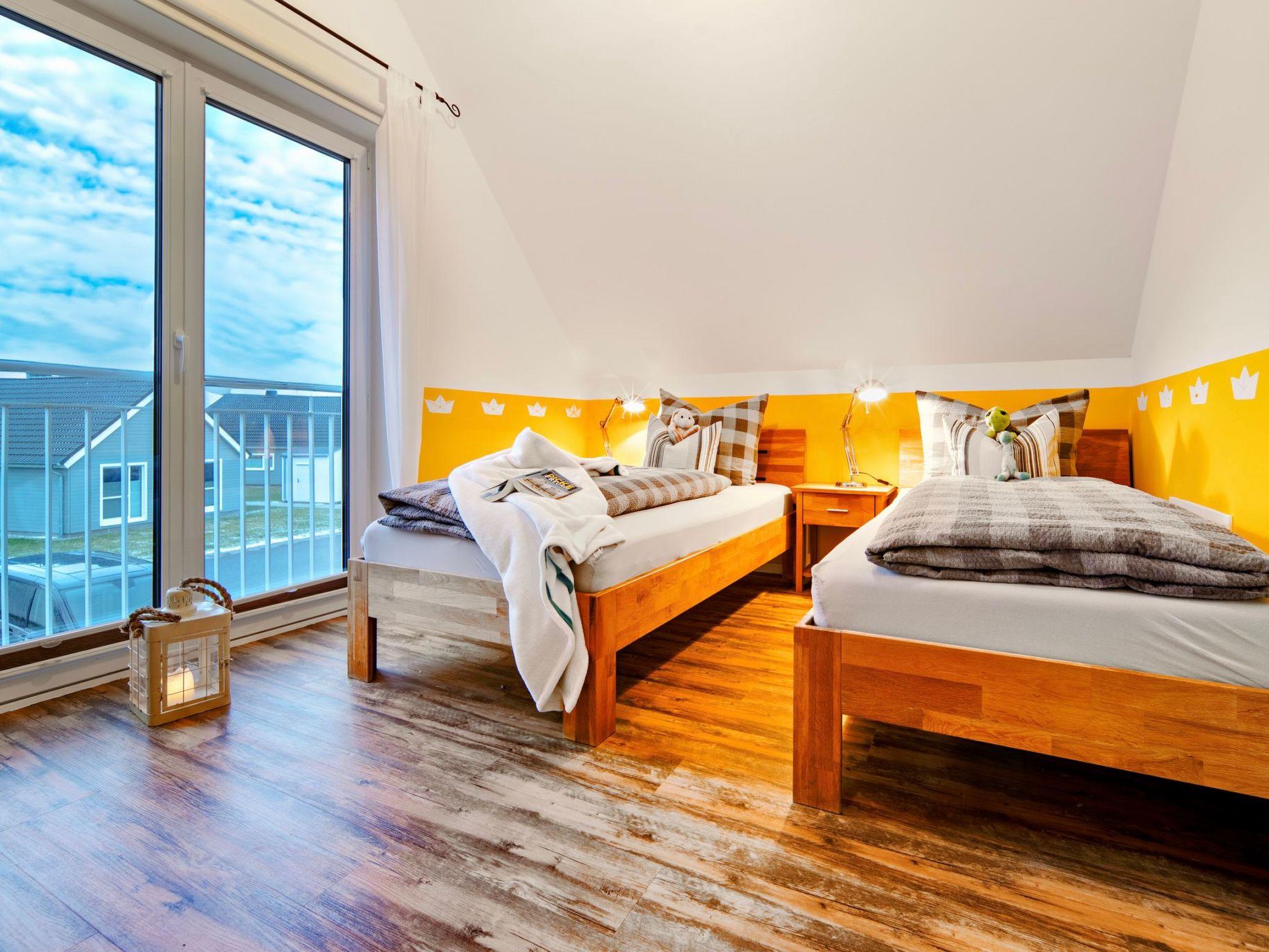 On the upper floor of the holiday home, you will find two bedrooms that invite you to dream. The master bedroom spoils you with a comfortable double bed and a breathtaking, direct view of the water. A ceiling lamp with Bluetooth function provides our guests with music. The second bedroom has two single beds, which can be converted into a double bed if required, as well as a high-quality wardrobe bed. A fall-out guard is available for little Baltic Sea holidaymakers.