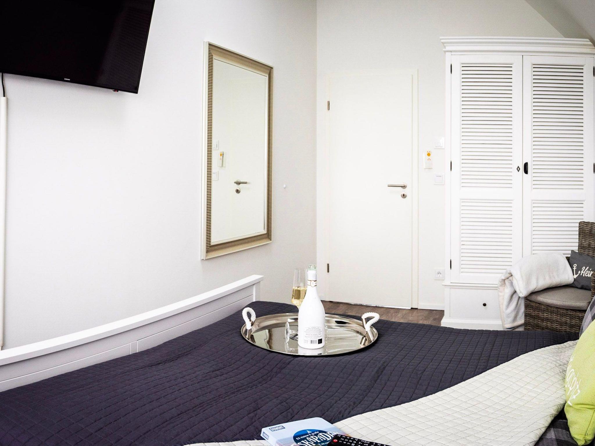 The holiday flat Ostseeflair by Seeblick Ferien ORO is entered via an external staircase, from here you can immediately access the first south-facing balcony (approx. 25 m²), which awaits you with a beach chair, teak deck chair and other cosy furniture for relaxing. The entrance area leads into the living and dining area with an additional shower room and WC. On the second level is your bathroom, which will make your wellness heart beat faster, as it has a floor-level XXL walk-in shower, a whirlpool bath, a sauna (infrared cabin) with colour light therapy and a radio with Bluetooth. Past the wellness oasis are two well-designed bedrooms with space for five adults and a marvellous view of the water. The master bedroom has a double bed (1.80 x 2.00) with an additional 40-inch Smart TV, overlooking the marina, while a bunk bed (bottom 1.40 x 2.00 max. 180kg), (top 90x200 max. 75 kg) for 3 people awaits you in the second bedroom with a view of the Schlei. However, the focus is on the perfectly realised, light-flooded living and dining area with wood-burning stove, floor-to-ceiling panoramic windows, which is designed in a loft-like style so that all rooms flow seamlessly into one another and the living area connects with nature. The integration of the open-plan kitchen with excellent equipment and functional design means that nothing stands in the way of cosy get-togethers, even when preparing all kinds of delicacies. The water backdrop in front of the dining area with a 180 degree panoramic view of the entire harbour and the Baltic Sea is close enough to touch - that's Baltic Sea flair. The second north-facing balcony (approx. 8m²) is accessed via the living area, where our guests can make themselves comfortable on additional seating and round off the day with a sundowner in the evening sun.spectacular sunlight can be expected in this flat thanks to the two balconies facing south and north. The furnishing style corresponds to the exclusive location of the holiday flat: country house style paired with clear colours and shapes promise peace and retreat, while individual colour accents provide refreshing lightness.The entire holiday flat can be easily tempered via the underfloor heating and, thanks to the stove and sauna, offers pleasant warmth and a cosy, homely atmosphere all year round. Entertainment is provided in the living area by a 55-inch Smart TV with Bluetooth and Samsung soundbar, a Playstation, Blu-ray player, a separate Internet radio and a collection of games.The Weber electric barbecue rounds off the high-quality equipment.Pets are not allowed in this apartment.Our apartment is a non-smoking property.free WLANA travel cot and a high chair are available for our little guests. You can bring your own bed linen/towels or rent them from our agency in the form of linen packages. The beds would then be made upon arrival. Heating, electricity and water costs are included in the rental price of the apartment Ostseeflair by Seeblick Ferien.a deposit is to be paid on arrival, this will be refunded immediately on check out.if you have any questions or problems on site, we are happy to help. Our guest service is also on site, who will be happy to help you and, unlike some other providers, will go to the flat with you and show you around. With us you enjoy the exclusivity of a personal check-in and check-out in your booked holiday flat. Different prices and minimum stays apply at different times of the season, which may differ from the number of nights stated for technical reasons.