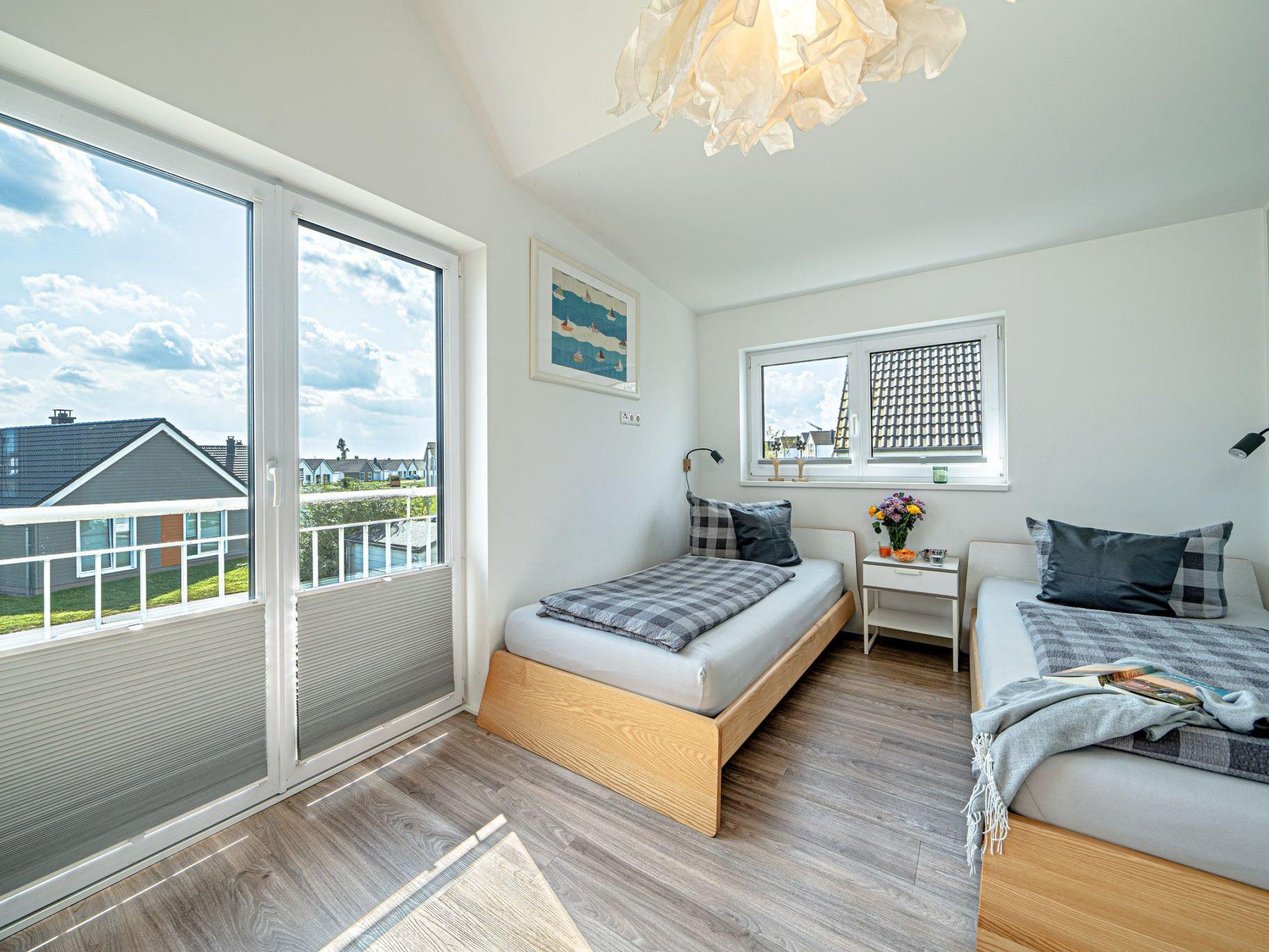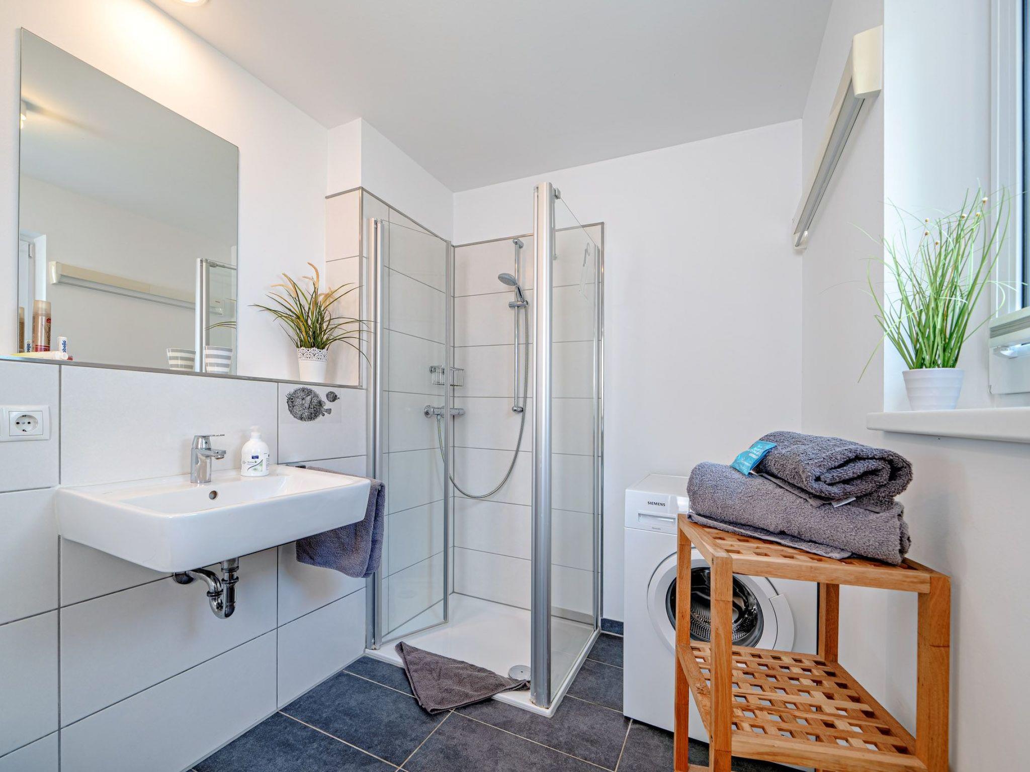 The holiday home offers you the luxury of two bathrooms, each on one living level. Relax in the infrared sauna or the spacious bathtub with whirlpool functions and enjoy the view of the water on the first floor.