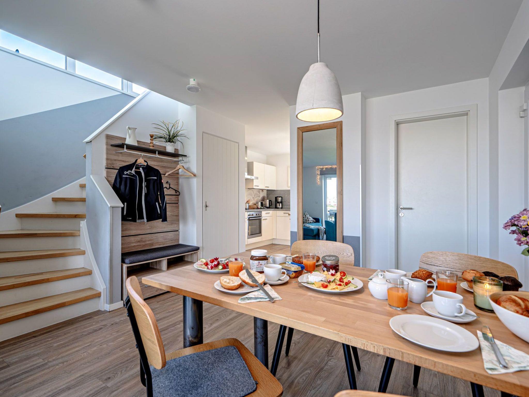 The interior design style of the house combines modern elegance with maritime flair. Natural materials and harmonious colour accents create an inviting atmosphere.