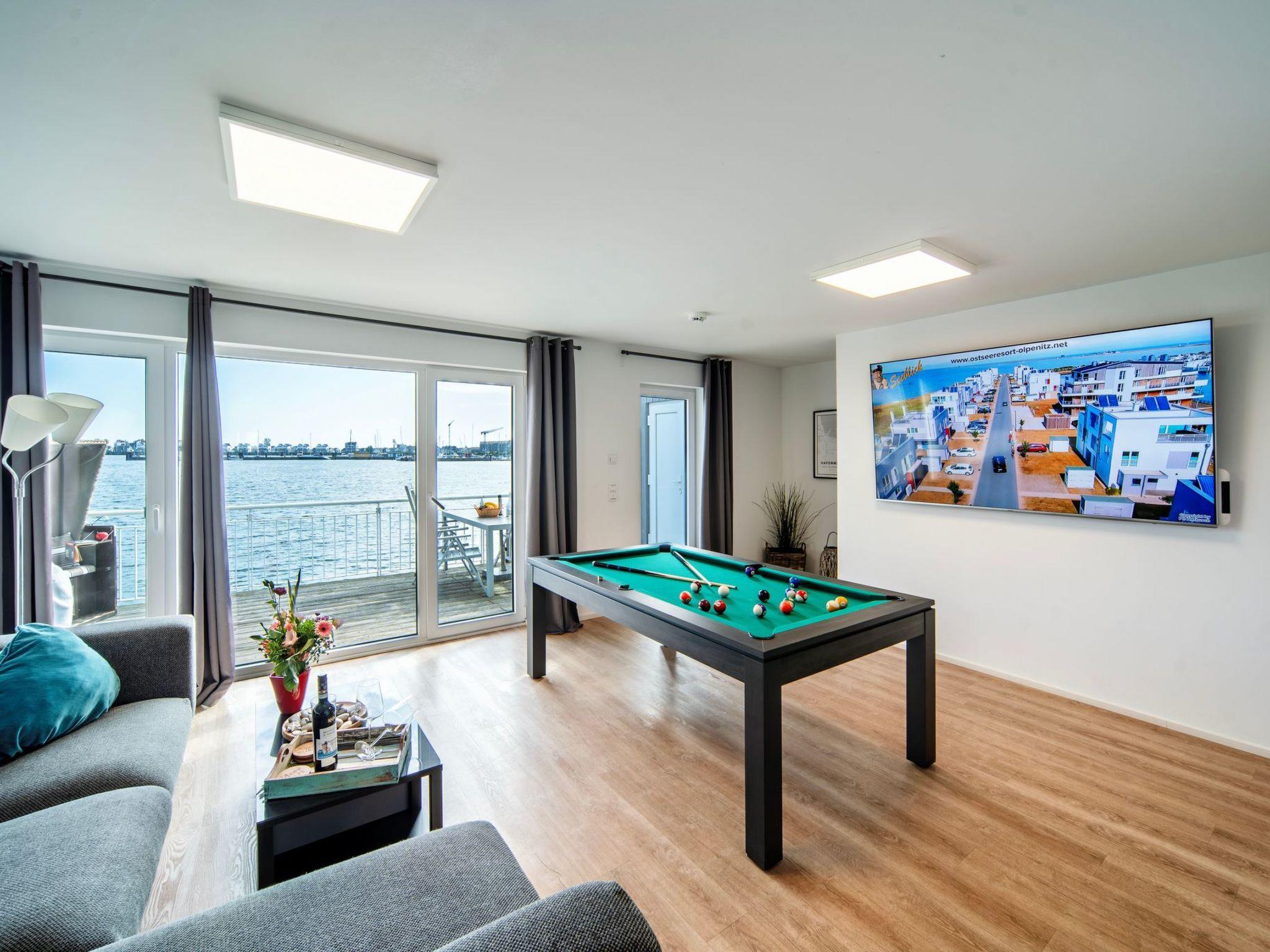 Enjoy your free time in our holiday home with numerous entertainment options. Relax in the Finnish sauna or experience exciting billiard matches. Stay active on holiday with the rowing machine and table football. Entertainment is provided by an incredible 82-inch television in the living room and televisions in both bedrooms. Use the free Wi-Fi internet connection to stay connected or relax with your favourite series on Netflix or Telekom Entertain. A massage chair and a fireplace provide additional cosiness.