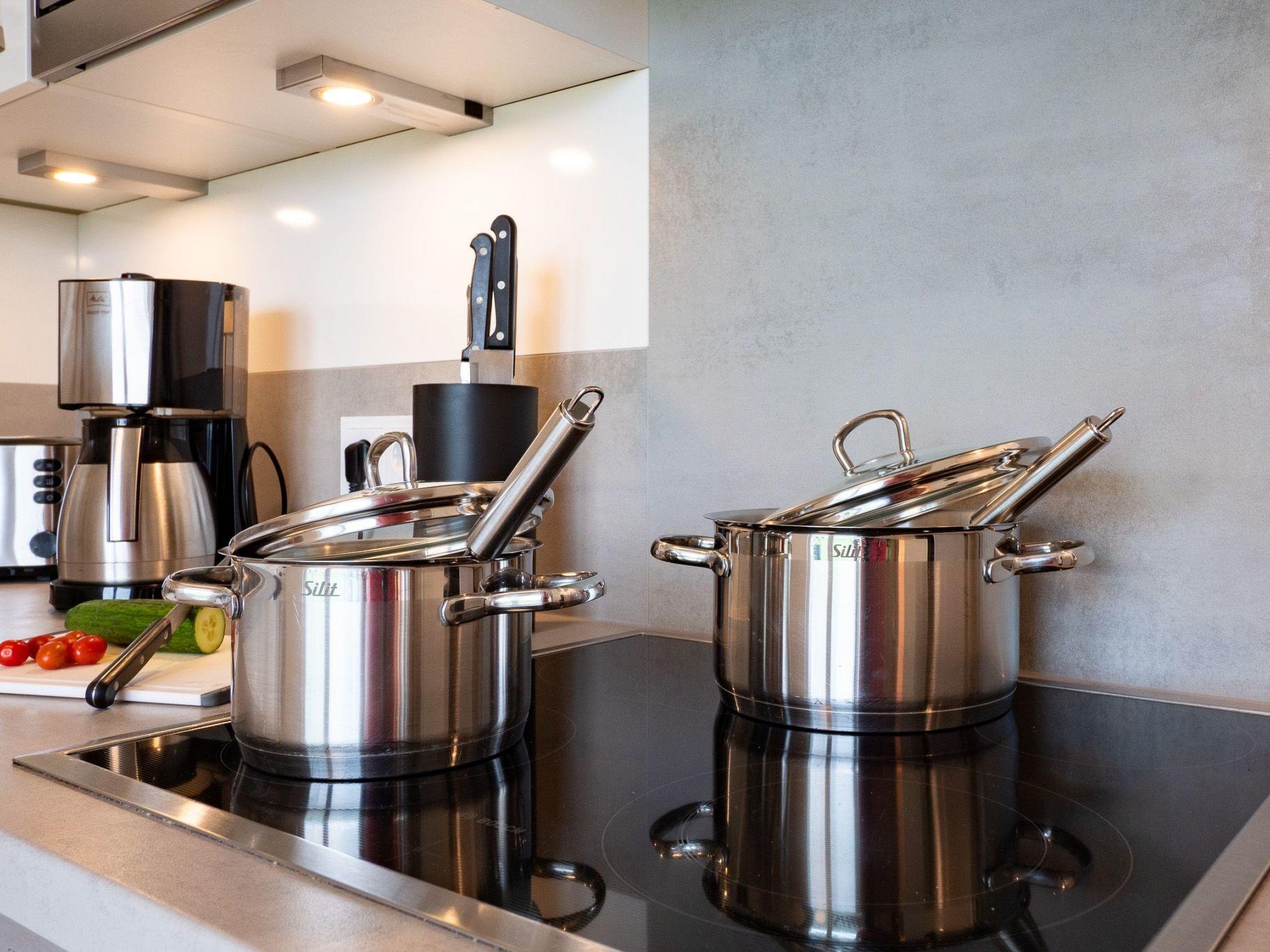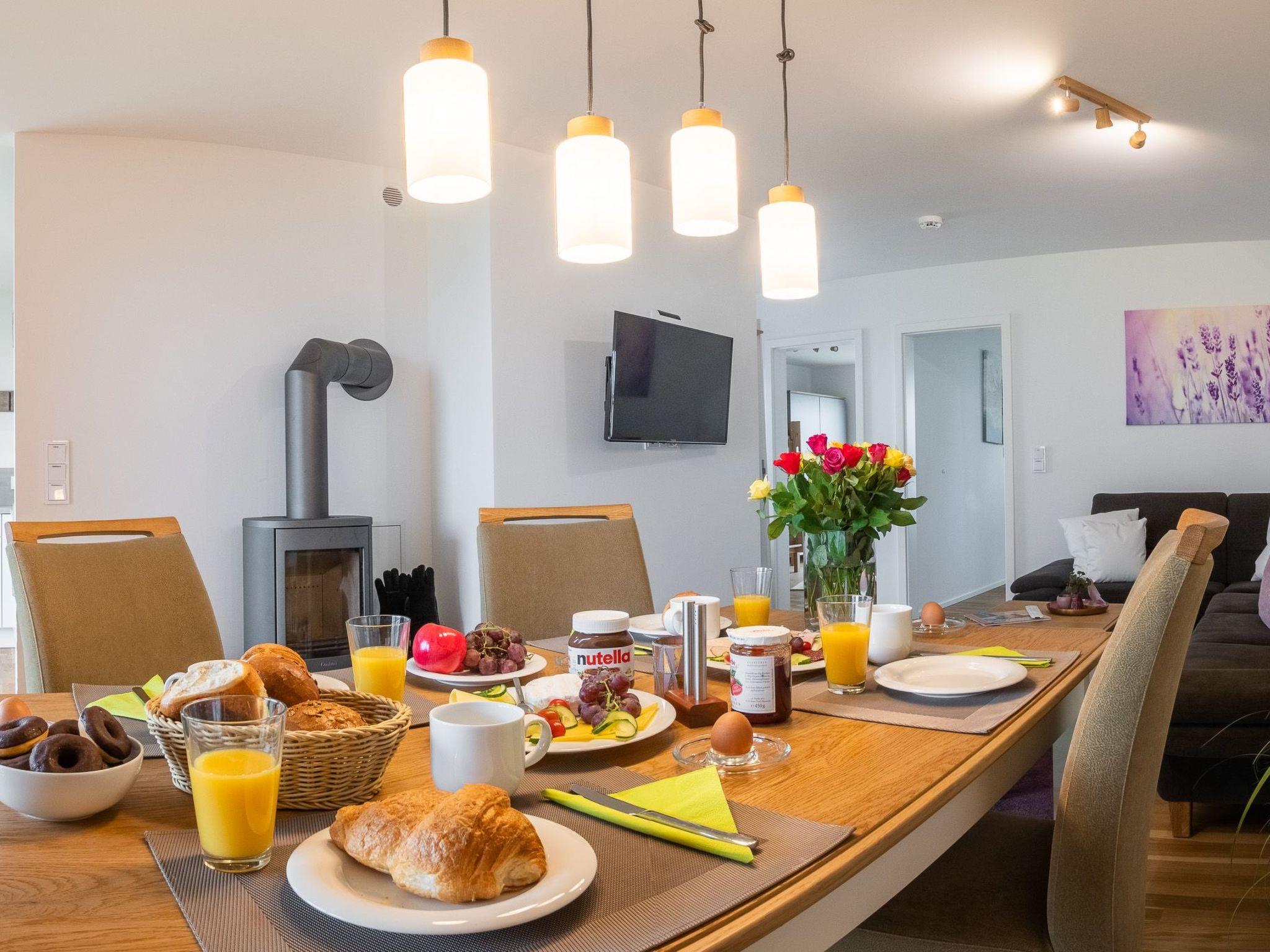 The wood-burning stove with its crackling fire and the underfloor heating transform even cold Nordic days into cosy hours of snuggling in this cosy ambience. Wi-Fi via fibre optic connection and Smart TV with Telekom Home Entertainment programme also provide indoor entertainment.
