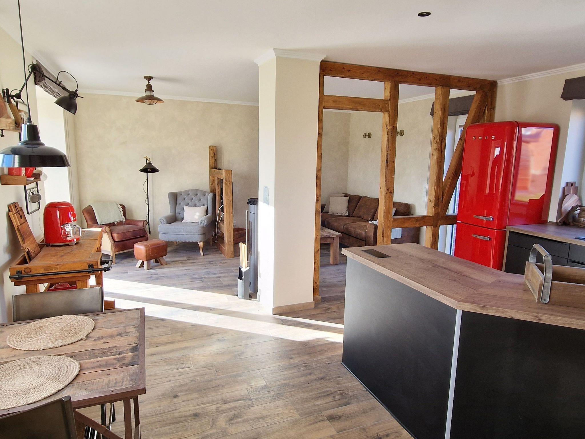 Die Ferienwohnung Klüterkammer im Anbau des ehemaligen Backhauses des Hofes ist in einem charmanten Mix aus Alt und Modern gestaltet und hochwertig ausgestattet. Eine Fußbodenheizung sorgt für angenehme Wärme.