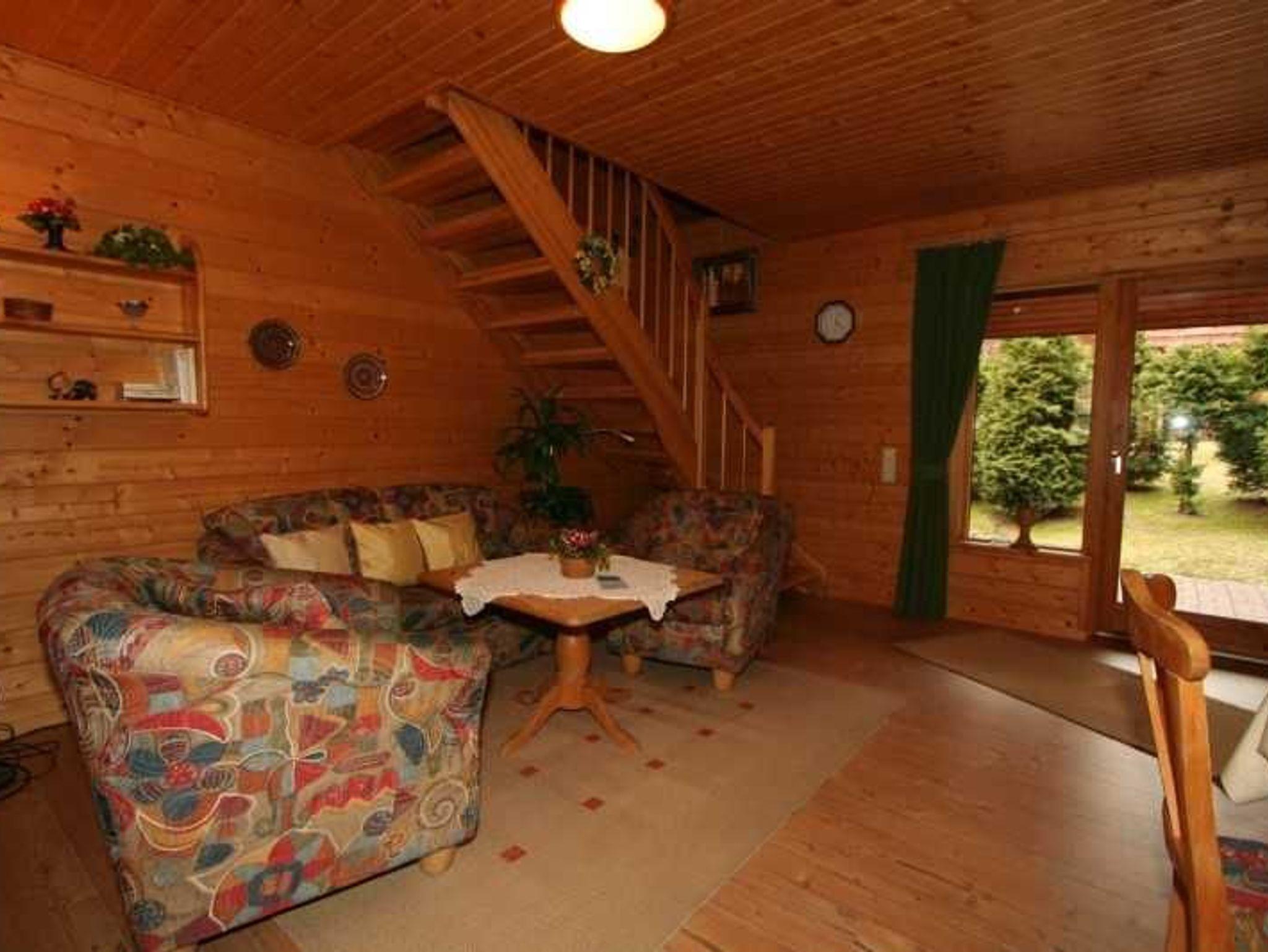 Die Holzdoppelhaushälfte bietet auf rund 65 m² Wohnfläche Platz für bis zu sechs Personen. Im Erdgeschoss befinden sich ein Wohn- und Schlafbereich mit Doppelbettcouch, ein separater Essplatz, SAT-TV mit Sky-Empfang, eine vollständig ausgestattete Küchenzeile mit Geschirrspüler und Mikrowelle, ein Abstellraum sowie ein Gäste-WC.