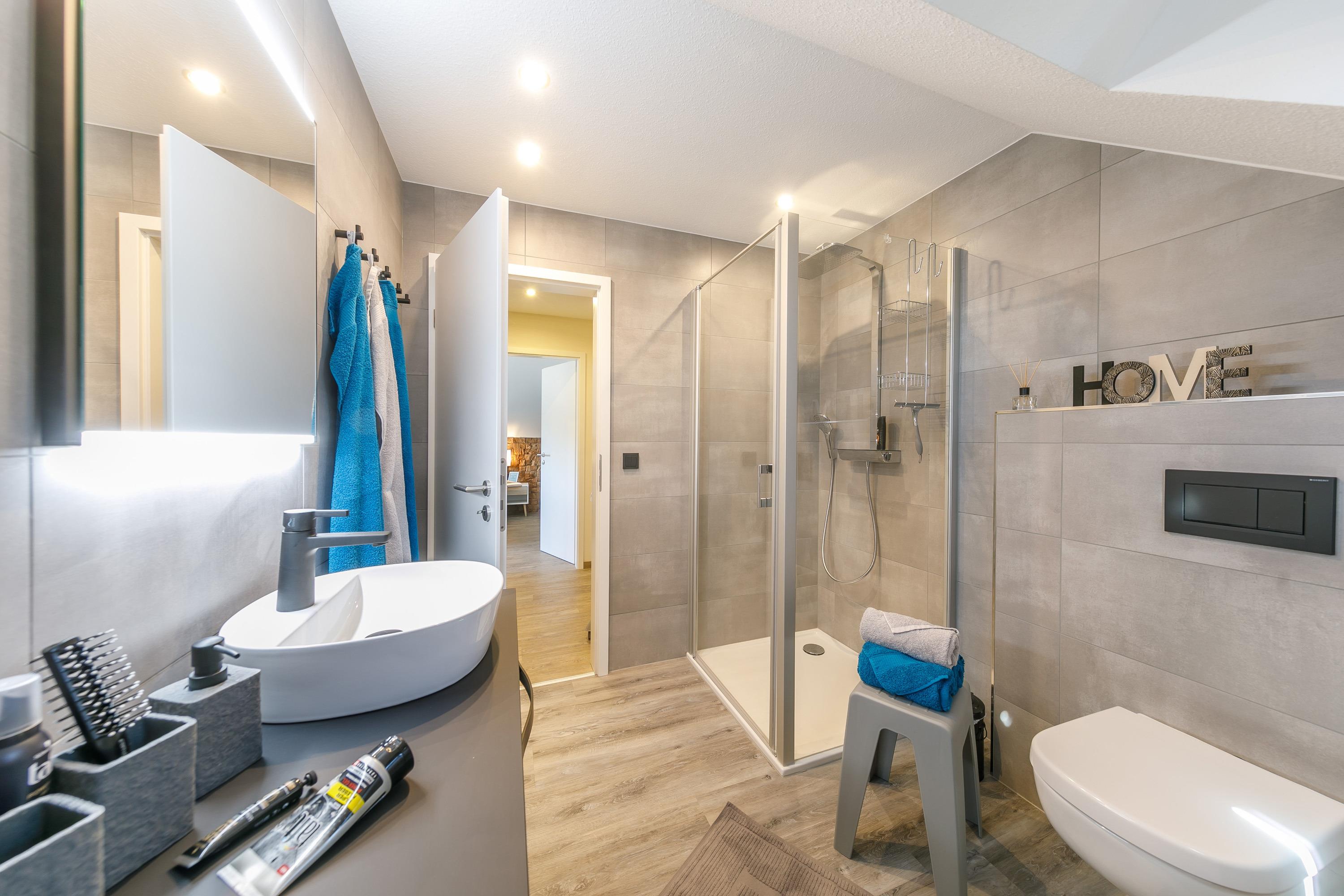 1 Duschbad mit ebenerdiger Regendusche und Föhn