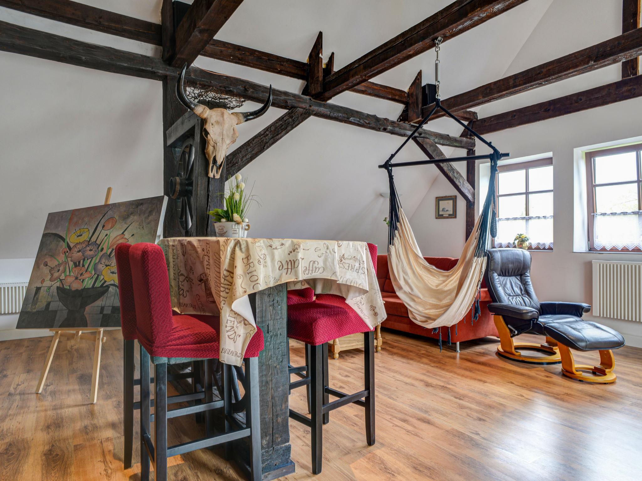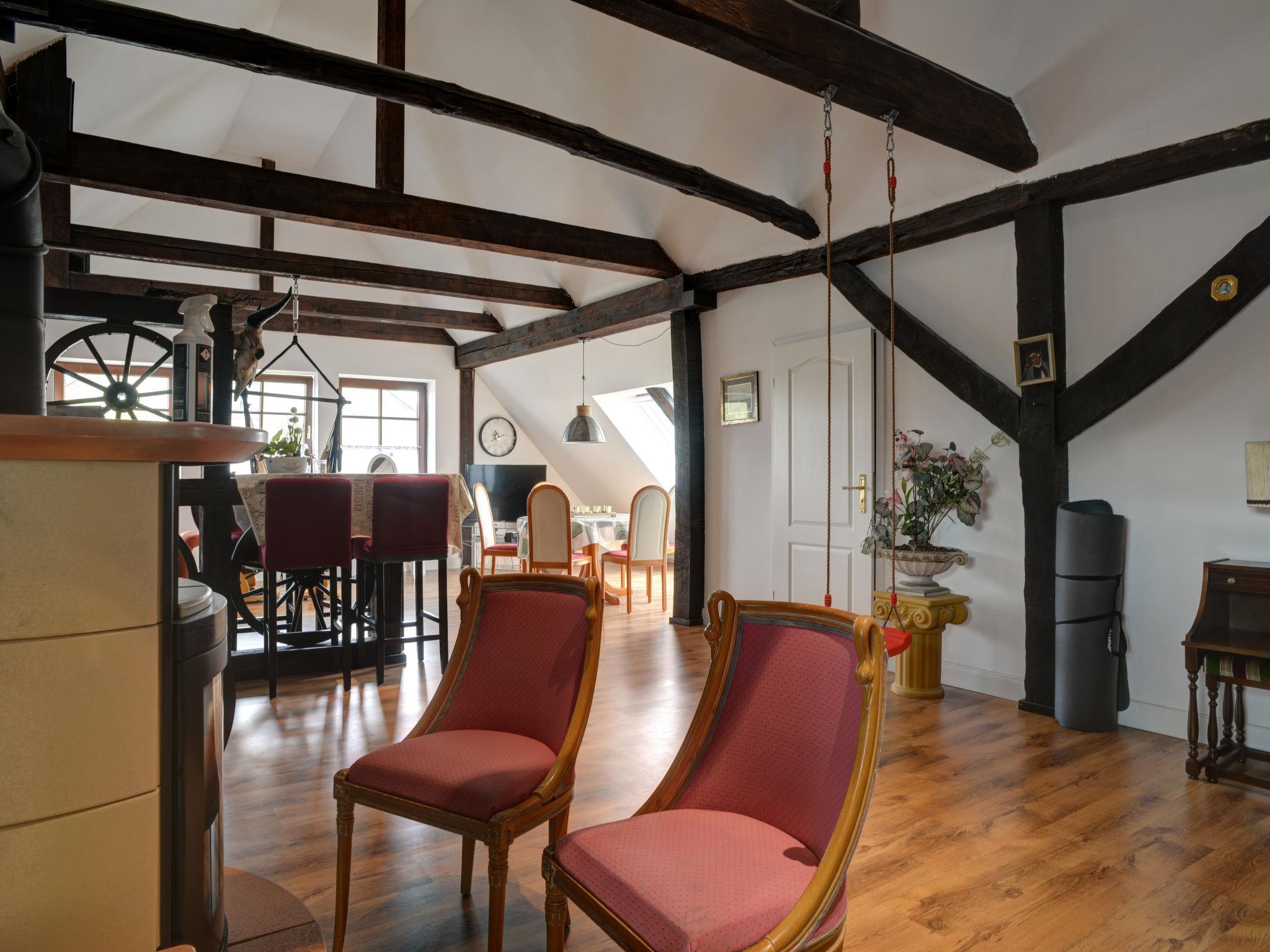 Beautiful, historical working farm, 3 storeys, from the 19th century, renovated in 2019, surrounded by trees and meadows. In the district of Hohe 5.3 km from the centre of Hehlen, 5 km from the centre of Bodenwerder, in a quiet position, 400 m from the edge of the forest. For shared use: large garden 1'500 m2 (fenced) with lawn and trees. Terrace (20 m2), garden furniture, barbecue, children's playground (slide, swing). In the complex: fitness room (extra). Storage room for bicycles, central heating system, washing machine (for shared use, extra), drying room. Parking (for 10 cars) on the premises, single garage (extra) at the house. Shop 7 km, grocery 5 km, supermarket 7 km, restaurant 5 km, bakery 5 km, bus stop "Hohe" 20 m, ferry "Hehlen" 8 km, outdoor swimming pool 8 km, indoor swimming pool 9 km. Walking paths from the house 200 m. Nearby attractions: Welterbe Corvey 33 km, Porzellanmanufaktur Fürstenberg 40 km. Well-known lakes can easily be reached: Humboldtsee 28 km. Please note: car recommended. The owner does not accept any youth groups. Garden seating area (200 m2) and the second terrace (9 m2) are available for shared use (both terraces are not visible to each other). Finnish steam tub (available 01.04.-30.11.) for shared use.