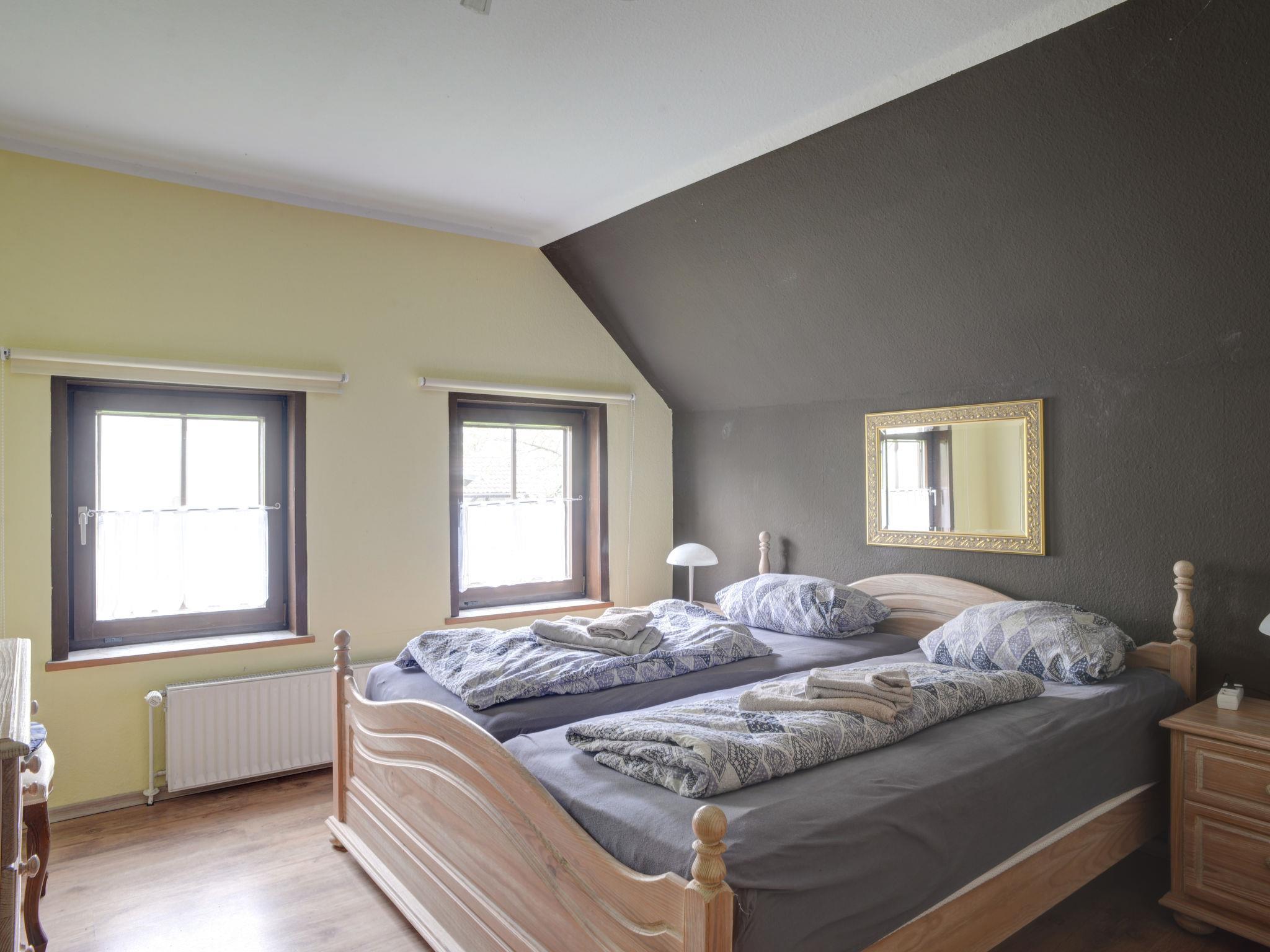 "Berghof Hohe ganzes Haus", 13-room house 496 m2 on 3 levels. Spacious, practical and cosy furnishings: living room with Scandinavian wood stove. Living/dining room with satellite TV (flat screen). 1 room with 1 double bed. 1 room with 1 double bed. Kitchen (oven, dishwasher, 4 ceramic glass hob hotplates, microwave, electric coffee machine). Bath/shower/bidet/WC, hydro massage bath. Upper floor: living room with satellite TV (flat screen). Living/dining room with open-hearth fireplace and CD-player. 1 room with 1 double bed (180 cm, length 200 cm). 1 room with 1 double bed (180 cm, length 200 cm). 1 room with 1 double bed (180 cm, length 200 cm). 1 room with 1 bed (80 cm, length 200 cm). Kitchen (oven, dishwasher, 4 ceramic glass hob hotplates, microwave, electric coffee machine). Shower/WC, bath/shower/bidet/WC, hydro massage bath. 2nd upper floor: open living/sleeping room with curtain with 1 double sofabed (200 cm, length 200 cm), 1 double bed, dining table, satellite TV and hi-fi system. Open kitchen (dishwasher, 4 ceramic glass hob hotplates, toaster, kettle, microwave, electric coffee machine) with Scandinavian wood stove, dining table and bar. 2 showers/WC. Top floor: (spiral staircase) open, with sloping ceilings, 1 room, ceiling height 160 cm with 2 beds (90 cm, length 200 cm). Living/sleeping room with sloping ceilings with 3 beds, cable TV and flat screen. Kitchen (oven, dishwasher, 3 ceramic glass hob hotplates, kettle, freezer, grill, electric coffee machine) with dining table. Shower/WC. Electric heating. Parquet floors. Facilities: baby cot, logs (extra). Internet (WiFi, free). Please note: non-smokers only. Maximum 3 pets/ dogs allowed. Smoke alarm, fire extinguisher.