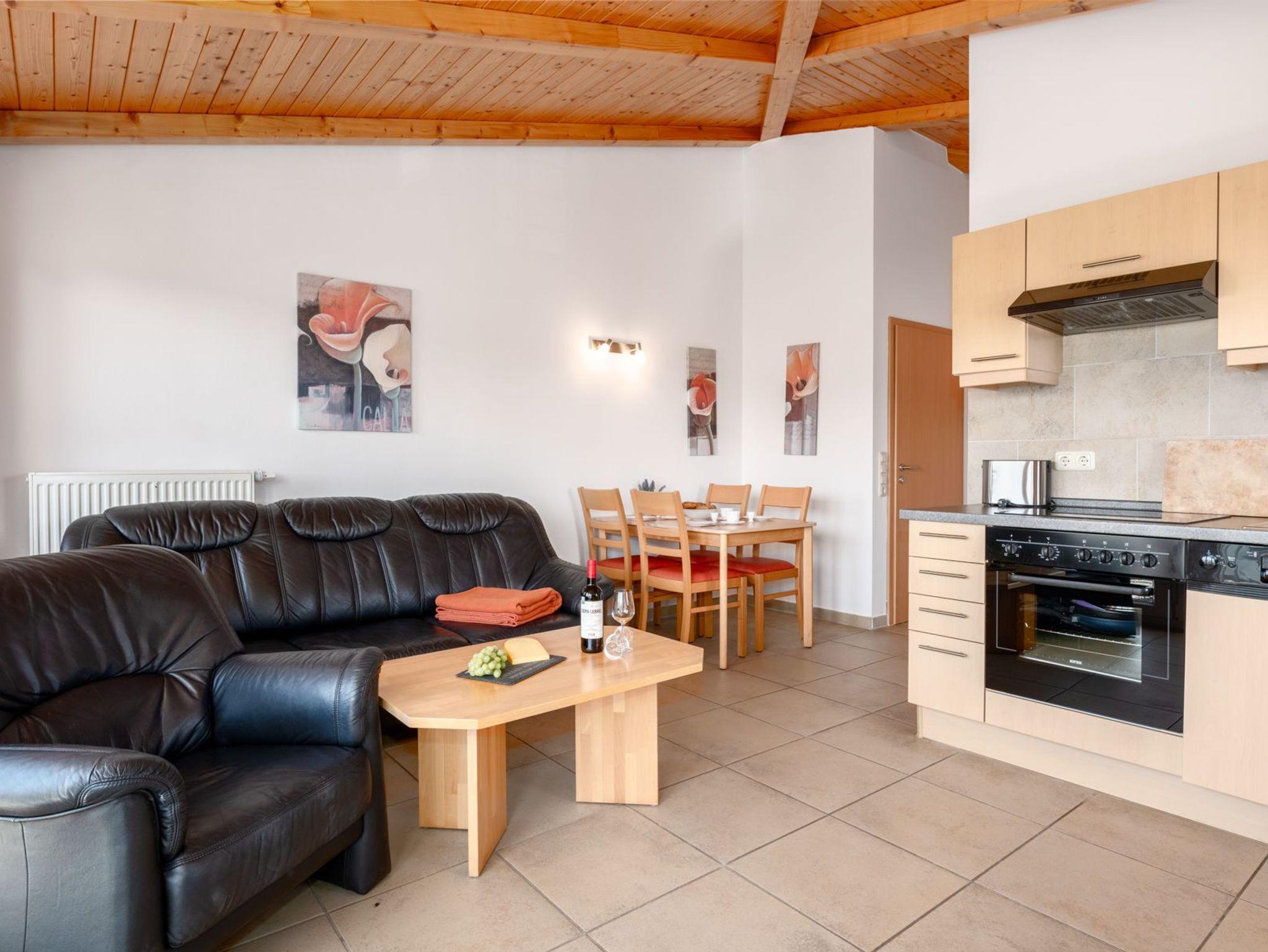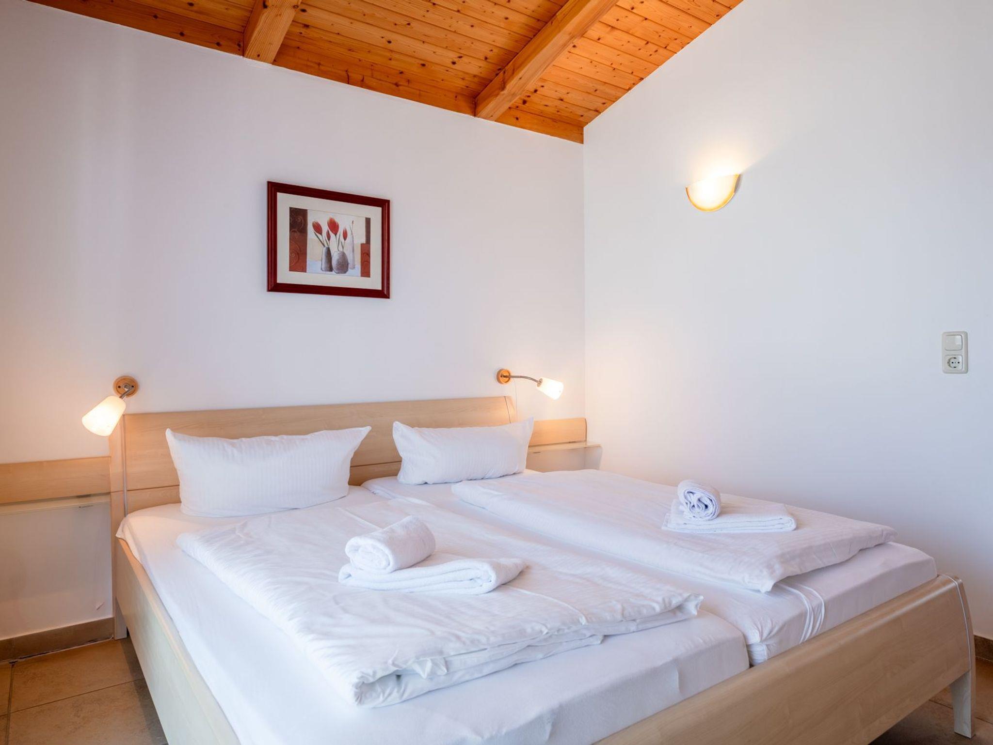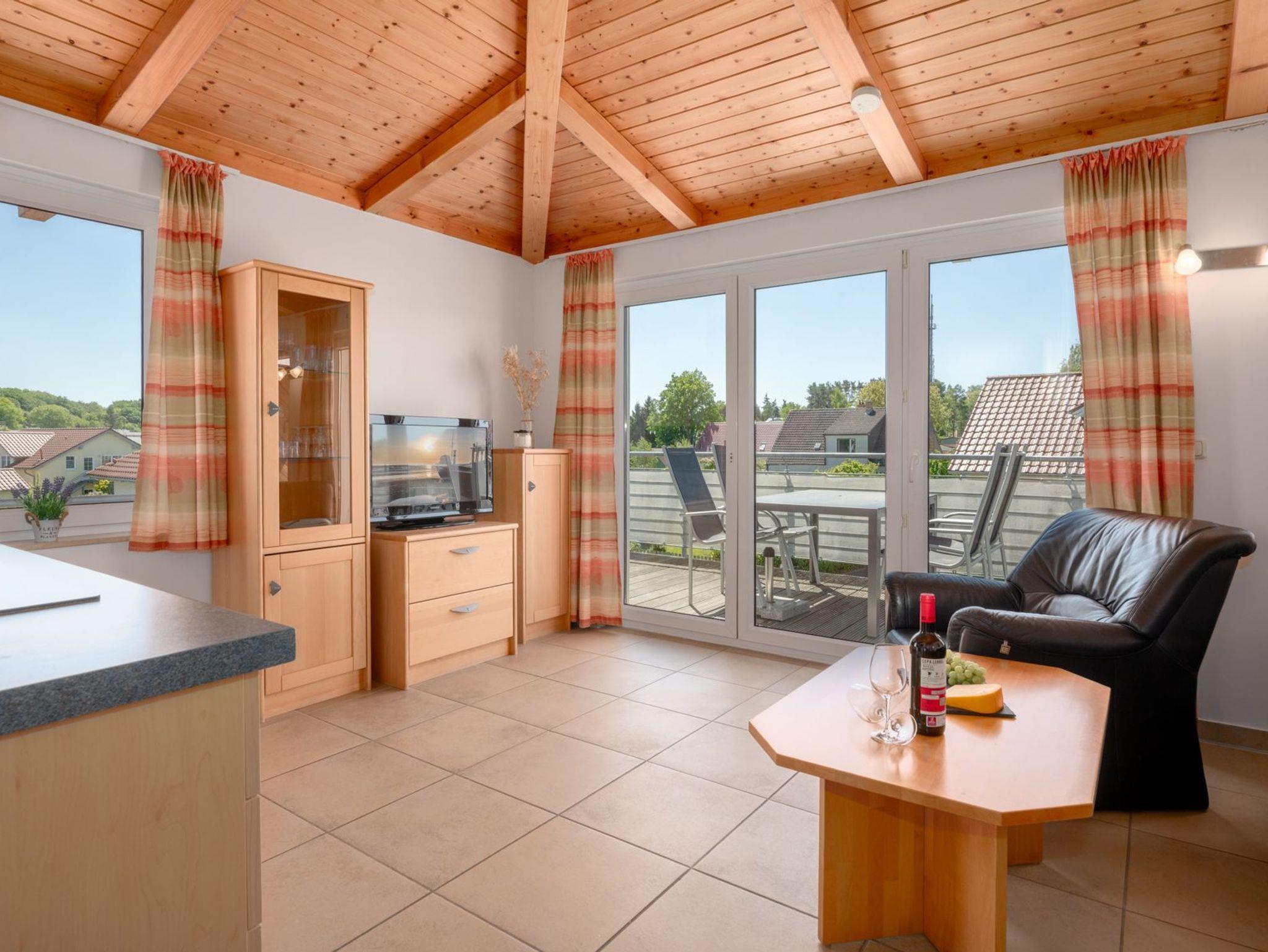 Die Dachgeschosswohnungen sind geeignet für bis zu 2 Personen und verfügen über einen großen Balkon sowie eine Wohnfläche von 48 m². Sie sind Nichtraucherwohnungen und bieten eine gehobene Ausstattung mit einer komplett ausgestatteten Küche, inklusive Mikrowelle, Backofen und Spülmaschine. Zudem gibt es SAT-TV in den Wohnungen. Das Badezimmer ist mit einer Dusche und einem WC ausgestattet. Ein Parkplatz ist im Preis inbegriffen.