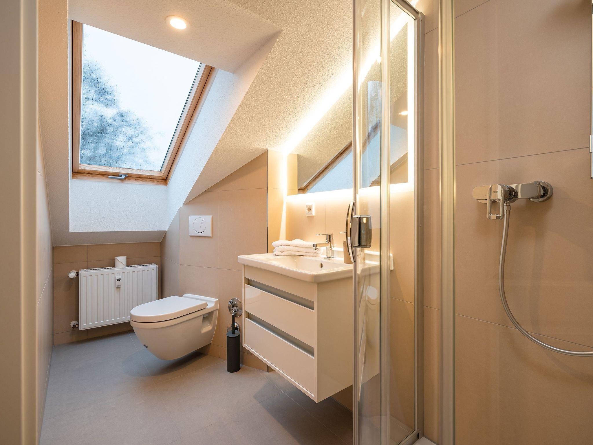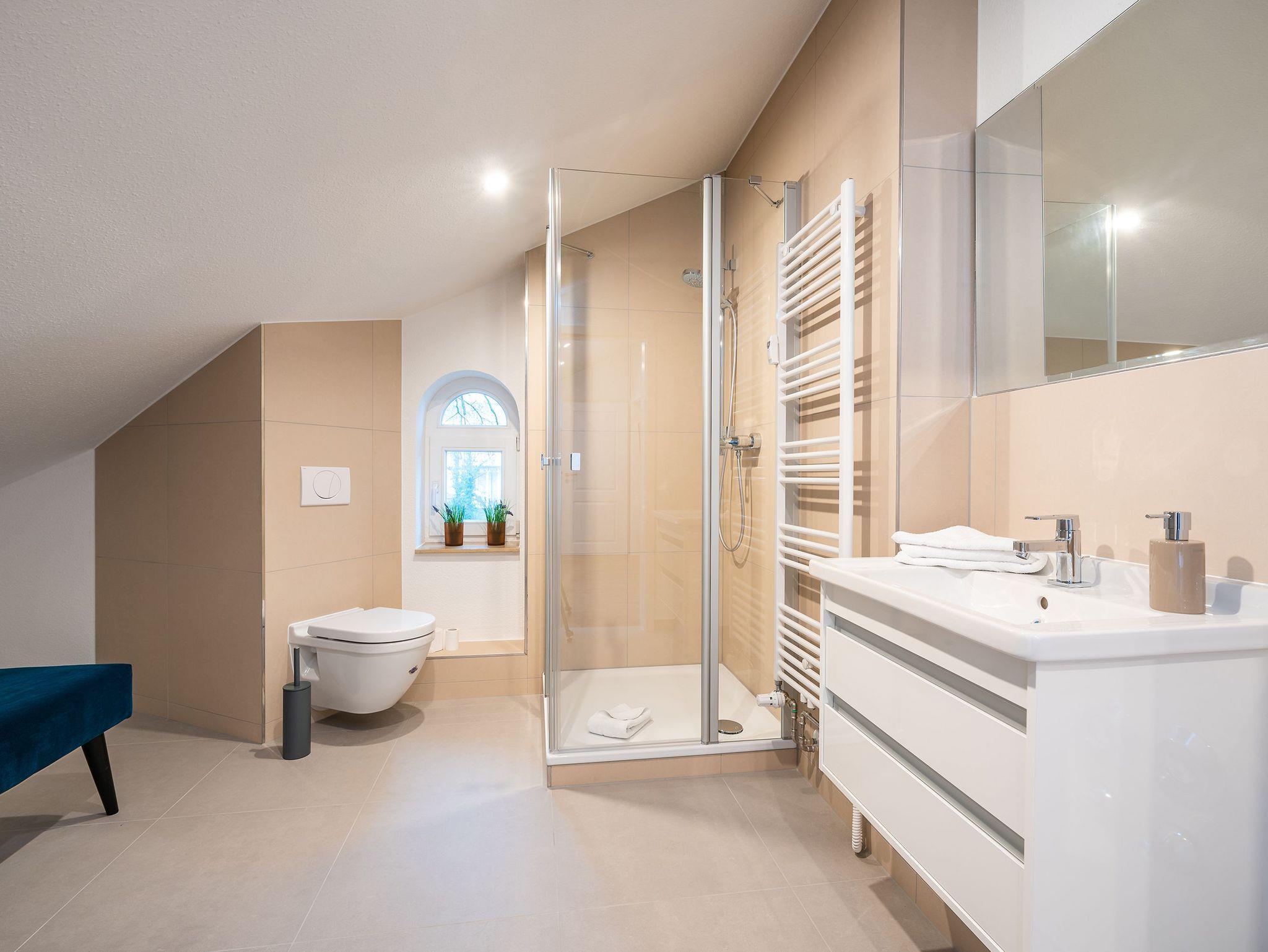 • 2 Badezimmer mit ebenerdiger Dusche und WC