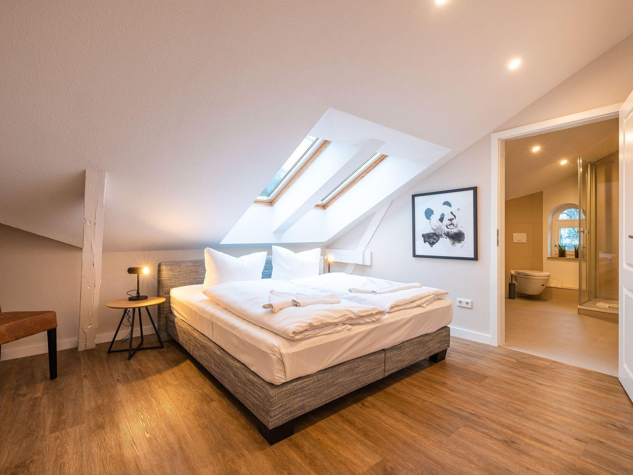 Entdecken Sie das charmante Ferienappartement Doctores 5 in der Dachgeschoss-Etage der denkmalgeschützten Villa Doctores, gelegen im Herzen des Kaiserbades Heringsdorf. Nur drei Minuten vom feinsandigen Strand entfernt, bietet diese elegante Unterkunft unter majestätischen Buchen auf einer sanften Anhöhe ein idyllisches Urlaubserlebnis.