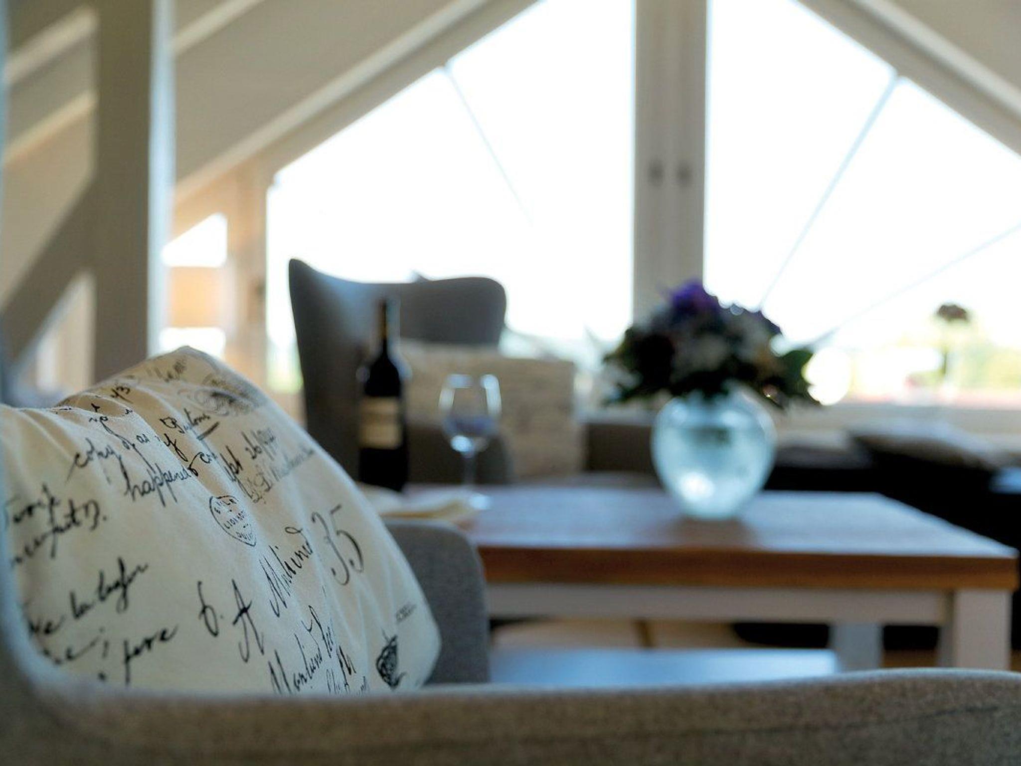 Highlight des Appartements ist die große Fensterfront des Wohnzimmers, die einen tollen Blick auf die Ostsee und über die Dächer von Heringsdorf bis nach Bansin gewährt. Aber auch vom Esstisch und in der Küche genießen Sie den Meerestraum Pur.