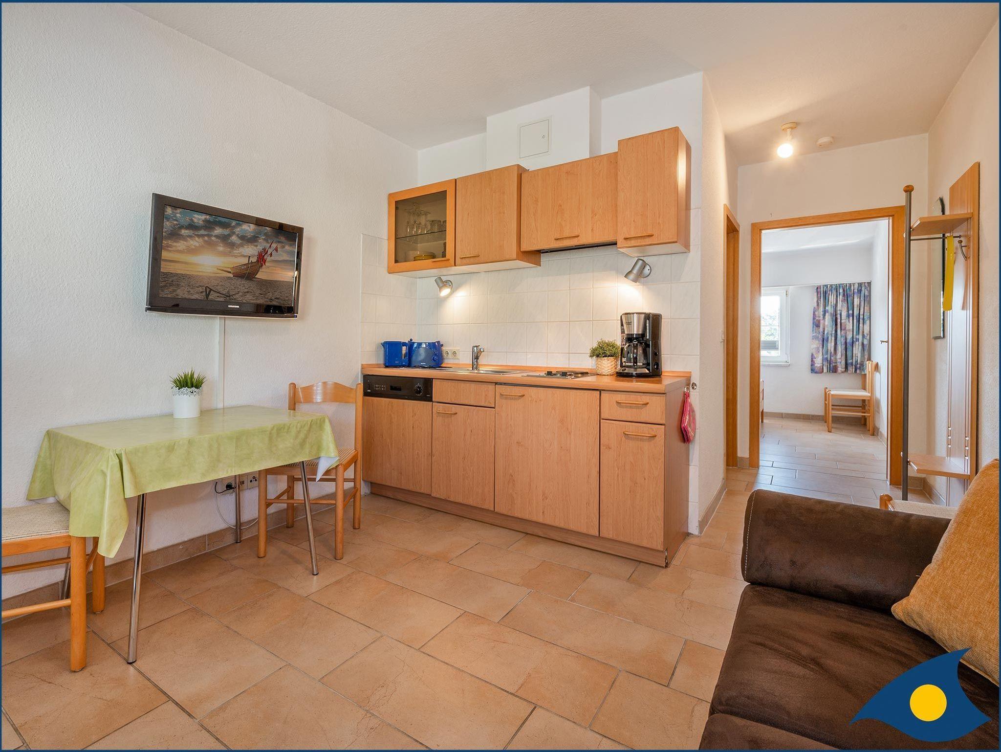 Klein aber fein - Diese gemütliche Ferienwohnung ist für 2 Personen geeignet begrüßt Sie auf 27 qm Wohnfläche. Der Wohnraum beherbergt neben der Küchenzeile, ein gemütliches Sofa und den Essplatz. Zudem stehen Ihnen ein Schlafraum mit Doppelbett (1,60 m breit) und Kleiderschrank sowie ein Badezimmer mit WC und Dusche zur Verfügung.