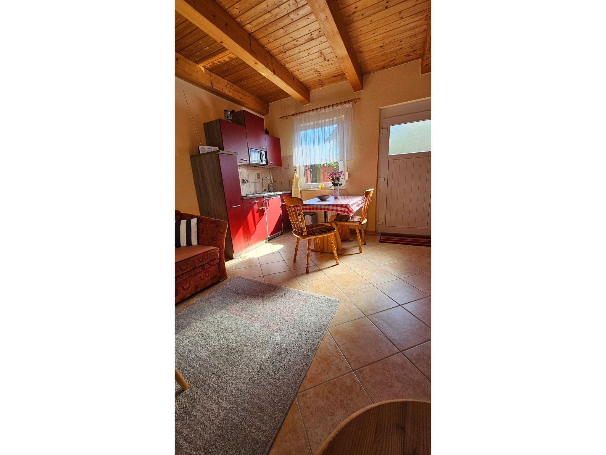 Der separate Ferienbungalow liegt auf dem Grundstück der Vermieter und ist umgeben von einem gepflegten Garten. Auf ca. 30 qm finden Sie einen Wohnraum mit offener Küchenzeile, Essplatz, Radio, Fernseher und eine Couch. Vom Wohnzimmer aus erreichen Sie die Terrasse in Südwest Lage mit Strandkorb und Sitzmöbeln. Das Schlafzimmer ist mit einem Doppelbett und Kleiderschrank ausgestattet. Das Badezimmer verfügt über eine Dusche/WC.