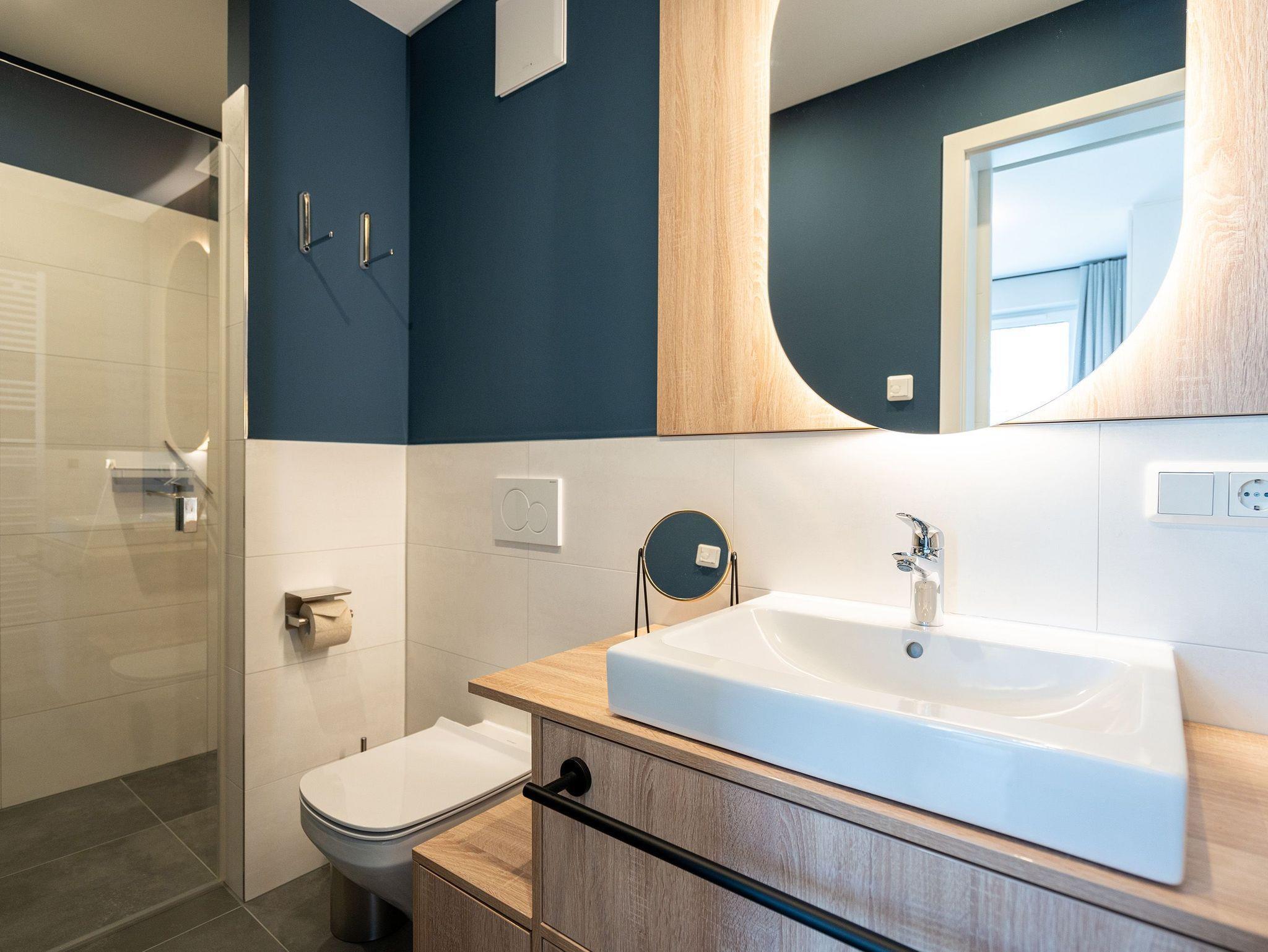 Willkommen in der großzügigen 3-Raum-Ferienwohnung Nr. 07 im Quartier am Strand! Diese herrliche 84 Quadratmeter große Wohnung im 2. Obergeschoss bietet Platz für bis zu 4 Erwachsene und ein Kleinkind (im Kinderreisebett). Der offene Wohnbereich ist ein einladender Ort, um Ihre Urlaubstage zu genießen. Hier finden Sie eine gemütliche Sitzgruppe, einen Flachbildfernseher (43 Zoll) und einen einladenden Kaminofen. Der Essplatz für 4 Personen lädt zu gemeinsamen Mahlzeiten und geselligen Abenden ein. Vom Wohnbereich aus gelangen Sie direkt auf den 9 Quadratmeter großen Süd-West-Balkon, wo Sie die Sonne und die frische Meeresluft in vollen Zügen genießen können. Die voll ausgestattete Küchenzeile bietet modernste Annehmlichkeiten, darunter einen Induktionsherd und eine Mikrowelle, um Ihre kulinarischen Abenteuer zu bereichern. Die Wohnung beherbergt zwei gemütliche Schlafzimmer, von denen eines mit einem komfortablen Boxspringdoppelbett (1,80m x 2,00m) ausgestattet ist und einen direkten Zugang zum innenliegenden Masterbad bietet. Hier finden Sie eine Dusche, einen Waschtisch und ein WC. Das zweite Schlafzimmer ist ebenfalls mit einem herrlichen Boxspringdoppelbett (1,80m x 2,00m), einem Flachbildfernseher und einem atemberaubenden Seeblick ausgestattet, der Ihre Morgen mit einer malerischen Kulisse bereichert. Zusätzlich zum Masterbad gibt es ein zweites Tageslichtbad mit Waschtisch, Dusche, WC, Waschmaschine und Trockner, um Ihren Aufenthalt so angenehm wie möglich zu gestalten. Die finnische Sauna für 2-3 Personen bietet eine wundervolle Gelegenheit zur Entspannung und Regeneration nach einem erlebnisreichen Tag. Genießen Sie den Ausblick zur Ostsee vom zweiten Balkon (6 qm) aus und erleben Sie Momente der Ruhe und Entspannung. Ihr Fahrzeug findet zwei sichere Plätze nebeneinander in der Tiefgarage, wobei einer optional mit einer E-Ladesäule buchbar ist. Ein wohnungseigener Fahrradkeller steht ebenfalls zur Verfügung. Erleben Sie unvergessliche Tage in dieser traumhaften Ferienwohnung und erkunden Sie die Schönheit der Umgebung.