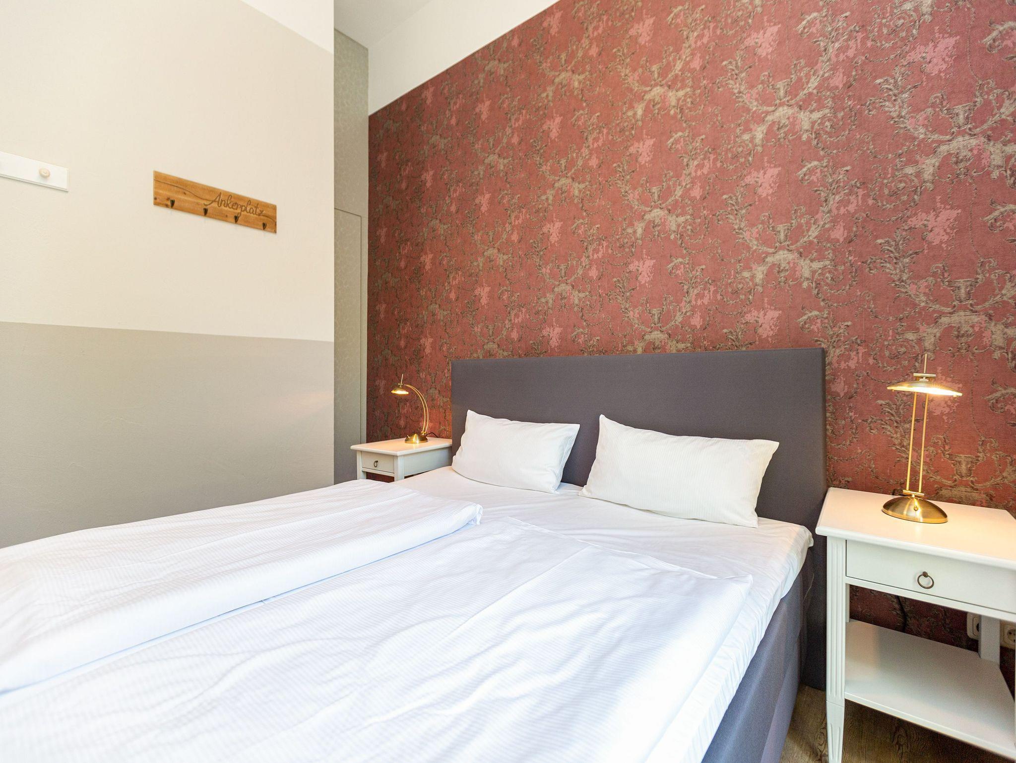 Morgens bei lichter Sonne erwachen in einem komfortablen und kuscheligen Boxspringdoppelbett. Das einzige, was zu hören ist, sind die Vögel in den Bäumen und von ganz ferne das leise Rauschen der Ostsee. So kann ein Urlaubstag beginnen. Und so beginnt er in dem schönen Drei-Zimmer-Appartement Nr. 8 im 1. Stock der Villa Amelia garantiert. Hohe und helle Räume lassen das Gefühl von Leichtigkeit und Unbeschwertheit aufkommen. Mit edlen Vintage-Möbeln eingerichtet, verströmt das Urlaubsdomizil auf seinen 50 Quadratmetern das Laissez-faire einer mondänen und längst vergangenen Zeit. Ohne den Komfort und die Technik von Heute vermissen zu lassen. So sorgt ein großer Flat-TV für Unterhaltung. Die Küche - separat, doch offen - ist mit allen Geräten und feinem Geschirr ausgestattet. In den zwei Schlafzimmern können bis zu 3 Erwachsene [&] 1 Kind bis 15 Jahre Ruhe finden. Ein Schlafzimmer verfügt über ein Boxspringdoppelbett, das andere über zwei einzeln stehende Boxspringbetten. Das Marmor-geflieste Bad hat ebenfalls Charme und ist mit Dusche, WC und Waschtisch ausgestattet. Vom Wohnzimmer und von der Küche aus geht?s auf einen kleinen Balkon. Hier können Sie gemütlich essen, trinken und einfach das viele Grün um Sie herum genießen. Und für einen rundum sorglosen Urlaubsgenuss ist ebenfalls gesorgt. Denn Ihre Betten sind bei Anreise bereits bezogen und Handtücher liegen für Sie bereit. Das WLAN Netz im Haus kann kostenfrei genutzt werden. Für Ihr Auto steht Ihnen am Haus ein Stellplatz zur Verfügung.