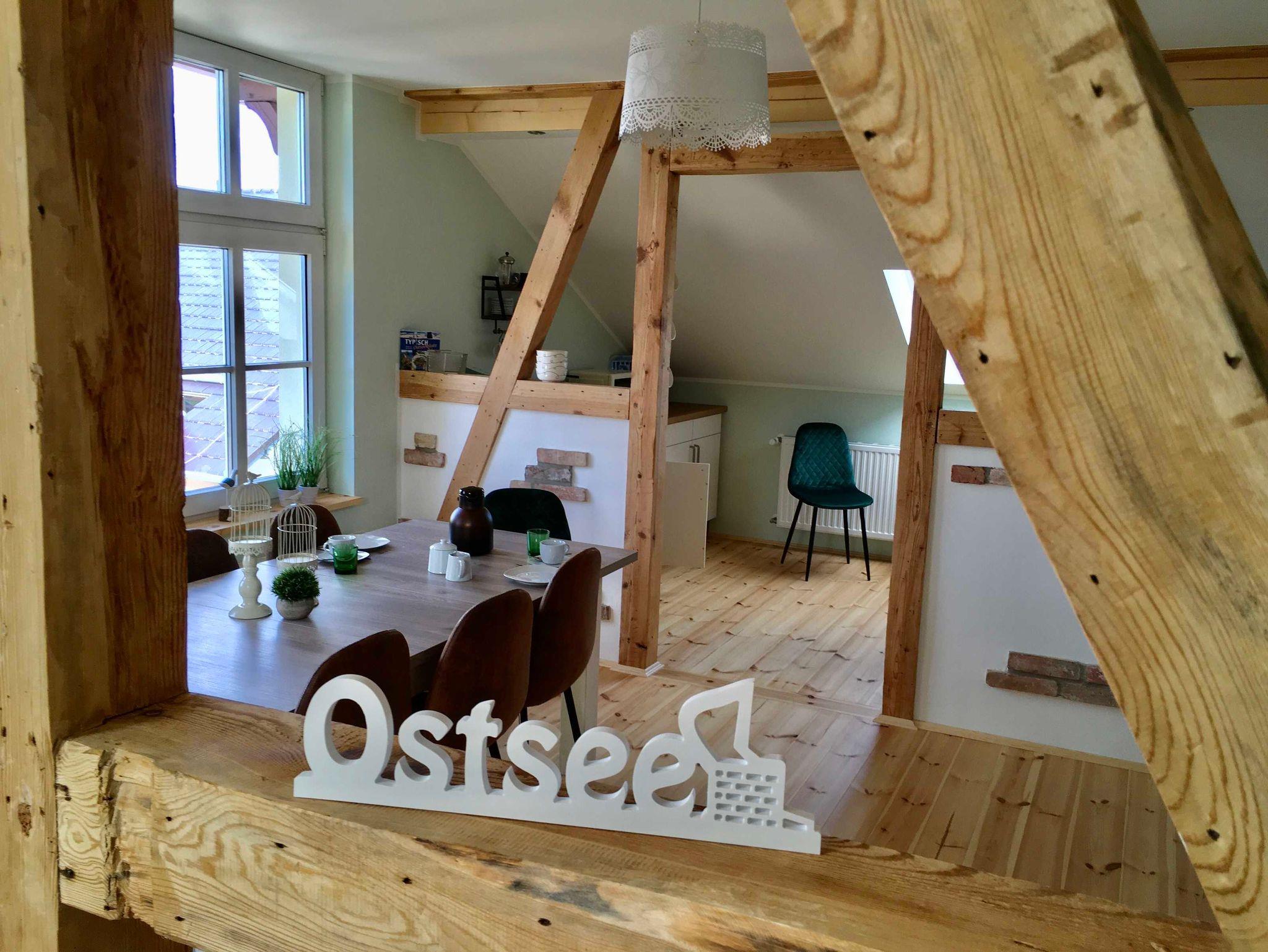 Einen besonderen Charme verleihen die in allen Wohn- und Schlafräumen verlegten Holzdielen sowie die freigelegten Holzbalken. Unsere Ferienwohnung ist eine ideale Basis für Ihren erlebnisreichen Ostseeurlaub.