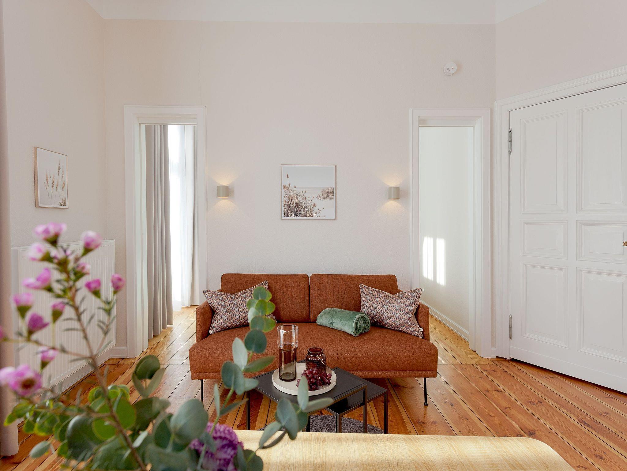 Nach einem gemeinsamen Dinner am Esstisch für zwei, können Sie den Abend auf dem neuen, gemütlichen Sofa ausklingen lassen, bevor Sie im separaten Schlafzimmer im komfortablen Boxspringbett (180 x 200 cm) eine erholsame Nacht verbringen. Ein Kleiderschrank bietet Ihnen ausreichend Stauraum für Ihre Garderobe.