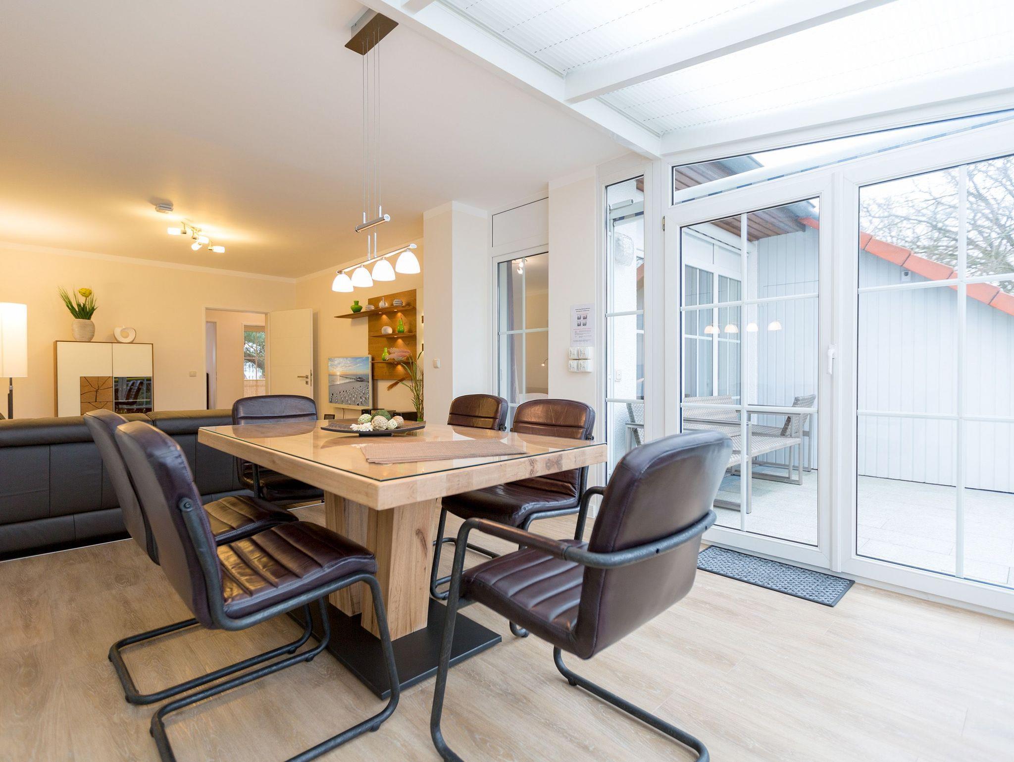 Ankommen und Wohlfühlen! Sie wohnen in ruhiger Lage in der Maxim Gorki Straße, nur wenige Schritte vom Strand und der Promenade entfernt. Im Dachgeschoss des Hauses empfängt Sie die moderne 3-Raum-Ferienwohnung (71 qm) für 4 Personen und ein Kleinkind ( bis 3 Jahre im Kinderreisebett). Das schöne Appartement glänzt in neuen Farben, denn es wurde erst kürzlich komplett renoviert und neu ausgestattet. Helle Farben, abgestimmte Stoffe und wertige Holzmöbel schaffen hier ein stimmiges Urlaubsdomizil. Im Wohnbereich auf der großen Ledersitzgruppe lässt es sich wunderbar Relaxen und TV schauen. Lichtdurchflutet und mit tollem Ausblick auf den Schloonsee schließt sich hier der Wintergarten an, in dem der schöne Essplatz integriert ist. Von hier aus hat man Zugang zum Balkon. Ein großzügiges Schlafzimmer mit einem hochwertigen Doppelboxspringbett (1,80 m x 2,00m ) und zusätzlichem Flat-TV sorgt für erholsame Nächte. Das zweite Schlafzimmer ist mit zwei bequemen Einzelboxspringbetten ( 0,90 m x 2,00 m) ausgestattet, ein idealer Rückzugort für zwischendrin. Die separate Küche ist selbstverständlich hochwertig eingerichtet. Ein modernes Duschbad mit WC ergänzt die Wohnung. Auf dem Westbalkon, der mit hochwertigen Loungemöbeln ausgestattet ist, tanken Sie Usedomer Sonne und genießen den Ausblick ins Grüne und auf den Schloonsee. Für die Wohnung steht ein PKW-Stellplatz in einer separaten Garage ( Höhe 2,10m, Breite 2,50m) zur Verfügung, für Fahrräder gibt es einen Abstellraum im Keller des Hauses. Waschmaschine und Trockner (im Untergeschoss) im Haus sind kostenfrei nutzbar, auch das Wlan-Netz ist kostenfrei verfügbar.