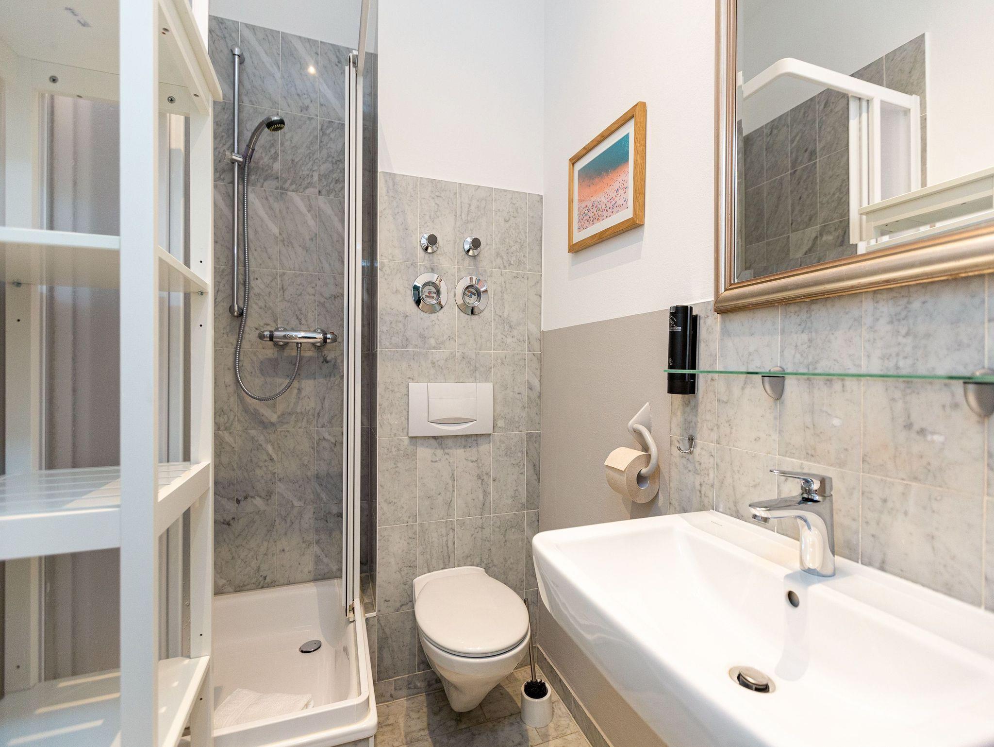 Luftige Leichtigkeit und viel Platz zum Durchatmen ? danach sehnt sich die urlaubsreife Seele. Und genau das bekommt sie in diesem schönen, lichtdurchfluteten Drei-Zimmer-Appartement im Hochparterre der sanierten Bädervilla Amelia. Ein Hauch kaiserzeitliche Noblesse durchweht die wunderbar hohen Räume des Altbaus. Bis zu vier Personen können in den 50 Quadratmetern gemeinsam Urlauben. Und ihr geliebtes Haustier dürfen Sie hier gerne mitbringen. Die Einrichtung ist sehr stilvoll. Im Wohnzimmer lädt eine stylische Vintage-Sitzgruppe zum Entspannen ein. Ein großer Flat-TV sorgt für Unterhaltung. Die in hellen Tönen gehaltene, offene Küche ist mit allen Geräten ausgestattet, die zum Kochen benötigt werden. Ein schöner, heller Essplatz ist der ideale Ort zum gemeinsamen Essen und Erzählen. Herrliche Ruhe finden Sie in den beiden Schlafzimmern. Denn die Wohnung befindet sich in einer ruhigen Seitenstraße unweit des Strandes. Eines der beiden Schlafzimmer verfügt über ein komfortables Boxspringdoppelbett, das andere über zwei Boxspringeinzelbetten. Viel Ablagefläche finden Sie in den jeweiligen Schränken. Das Badezimmer ist mit einer Dusche, Waschtisch und WC ausgestattet. Für Ihren Komfort liegen bei der Anreise Handtücher bereit und die Betten sind bezogen. Das WLAN Netz im Haus kann kostenfrei genutzt werden. Auf Wunsch stellen wir für unsere kleinen Gäste ein Kinderreisebett (ohne zusätzliche Matratze [&] Bettzeug) und einen Kinderhochstuhl (gegen einen Aufpreis) zur Verfügung. Ein Pkw-Stellplatz befindet sich auf dem Gelände neben dem Haus.
