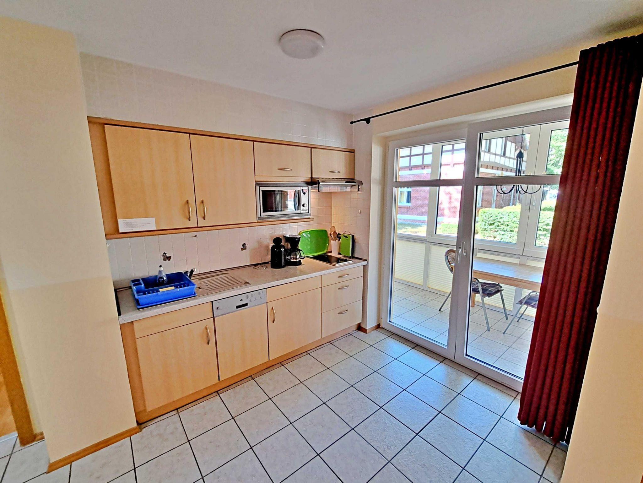 Diese komfortable 2-Raum-Ferienwohnung befindet sich im Haus Karavelle in Hochparterre. Von der Diele aus gelangen Sie in den großzügigen Wohnbereich mit Küchenzeile und Esstisch mit 4 Stühlen. Die Küche ist mit einem 2 Plattenherd, Kühlschrank, Mikrowelle, Spüle und Geschirr ausgestattet. Im hell möblierten Wohnzimmer befindet sich außerdem eine Eckcouch, Flat TV und CD Player. Im angrenzenden Wintergarten können Sie das Frühstück genießen oder den Abend bei einem Glas Wein ausklingen lassen. Im Schlafzimmer finden Sie ein bequemes Doppelbett. Für Kleinkinder kann hier auch ein Kinderbett aufgestellt werden. Das Bad ist mit Dusche/WC ausgestattet.