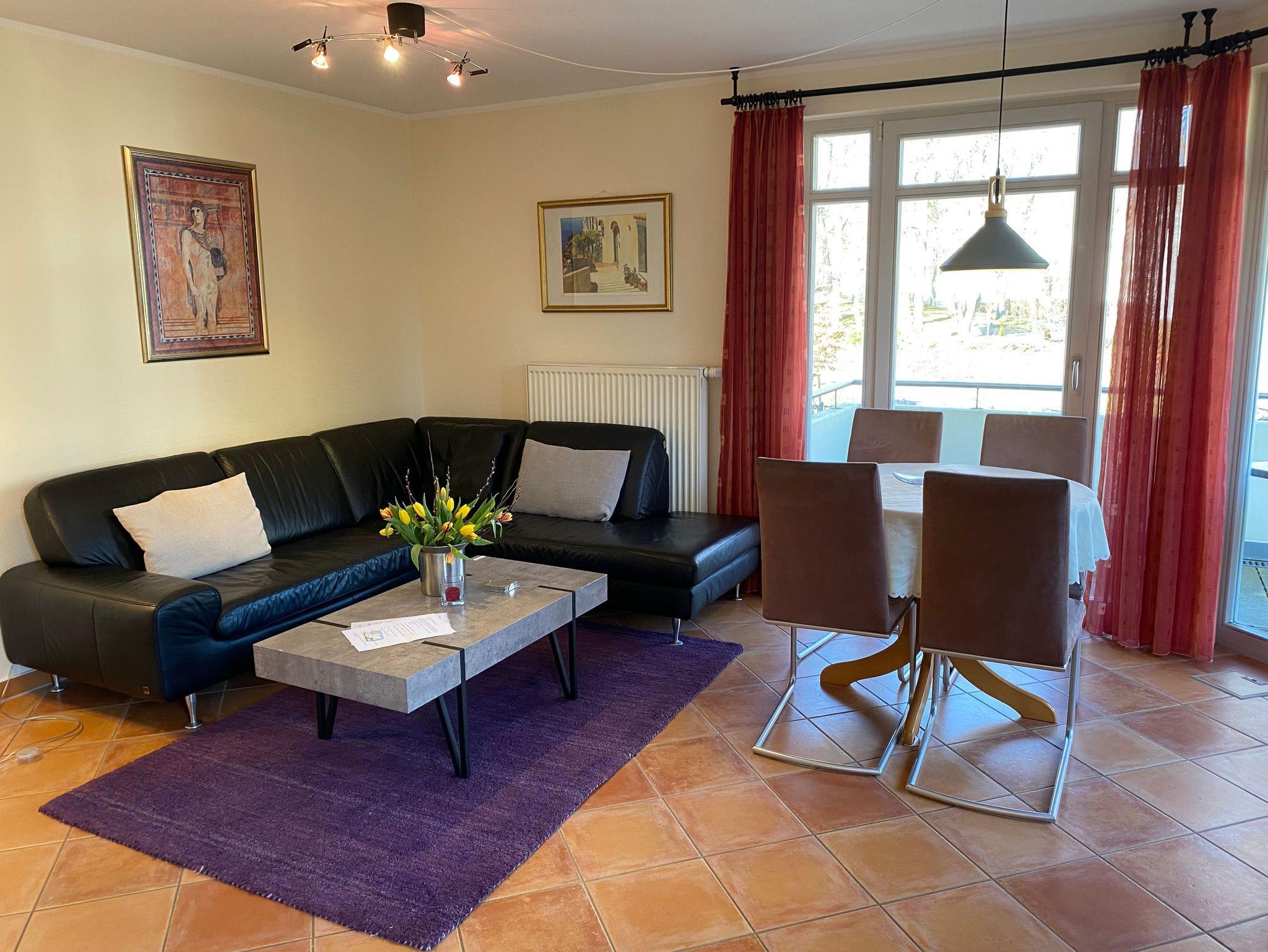 Genießen Sie Ihren Urlaub in dieser schönen 3-Raumwohnung Nr. 11 mit Balkon Richtung Park der Residenz Bleichröder. Der Wohnraum bietet durch eine funktionale Aufteilung zwischen Küche, Esstisch und Couchecke genug Platz für die gesamte Familie. In der Küche stehen Geschirrspüler., Backofen/Herd, Mikrowelle und ein großer Kühlschrank mit Gefrierteil zur Verfügung. Beide Schlafzimmer sind mit Doppelbetten versehen, im großen Schlafzimmer gibt es einen 2. TV. Diese moderne Ferienwohnung ist komplett mit Terracotta-Steinfliesen ausgelegt, sehr praktisch. Zur Ferienwohnung gehört ein Bad mit Dusche.