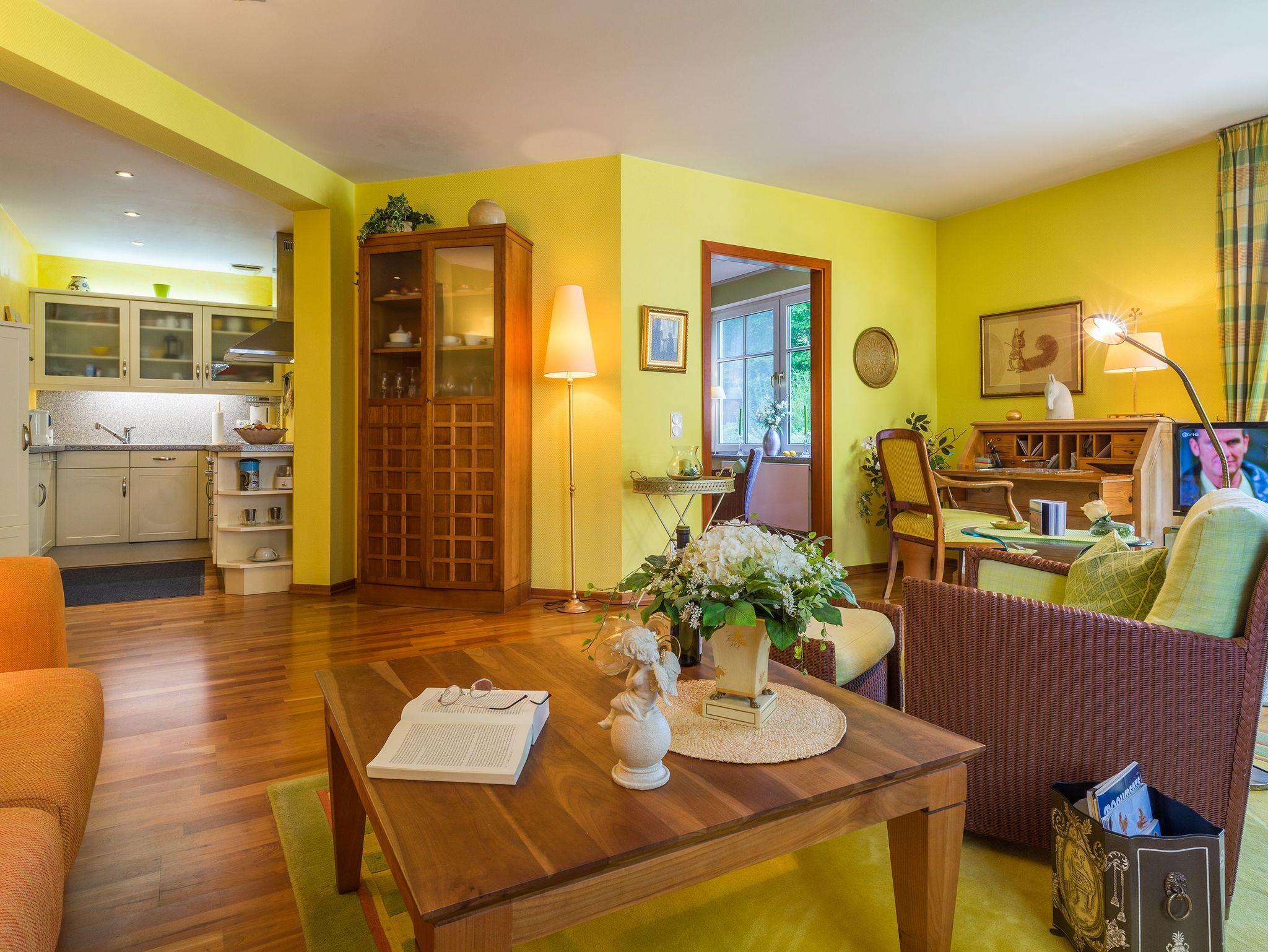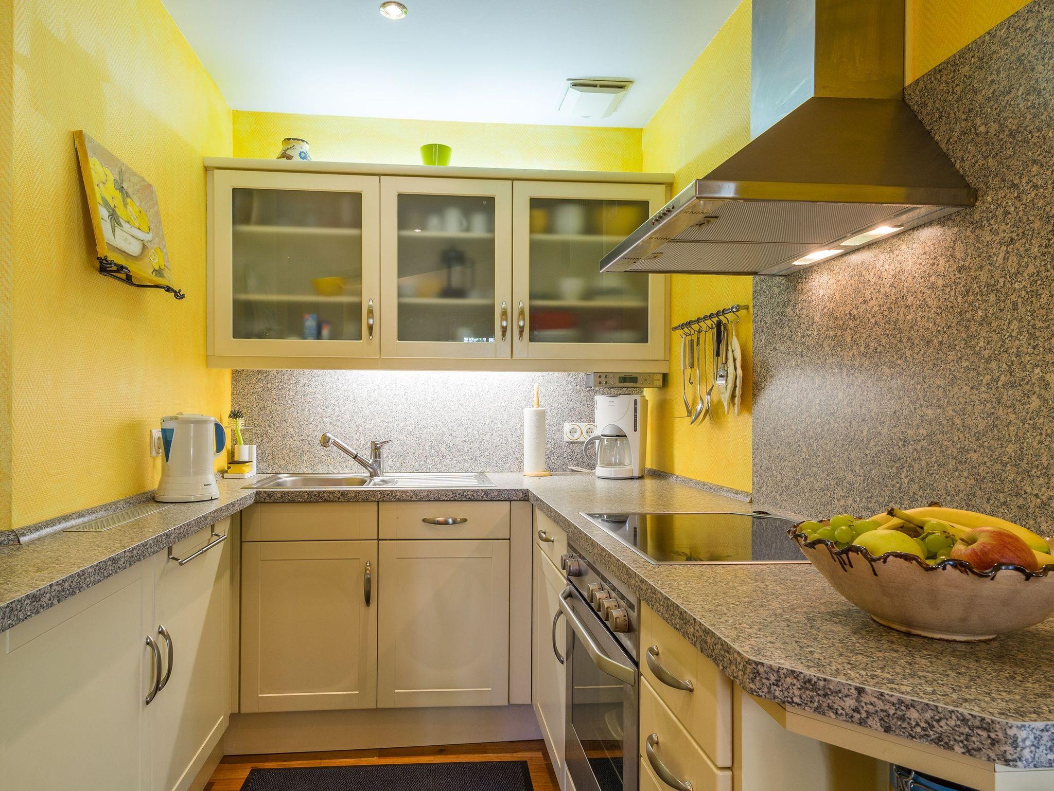 Die charmante 75 qm große Terrassenwohnung im Erdgeschoss ist speziell für zwei Personen konzipiert und vereint Gemütlichkeit mit modernem Komfort. Sie bietet ein einladendes Wohnzimmer mit Flat-TV und Radio, ein separates Esszimmer mit einem Elektrokamin für stimmungsvolle Abende, ein Schlafzimmer mit zwei komfortablen Einzelbetten sowie ein Badezimmer mit Dusche und ein zusätzliches Gäste-WC. Die voll ausgestattete Küchenzeile inklusive Spülmaschine ermöglicht unkomplizierte Selbstversorgung, während die sonnige Terrasse mit eigenem Strandkorb zum Entspannen im Freien einlädt.