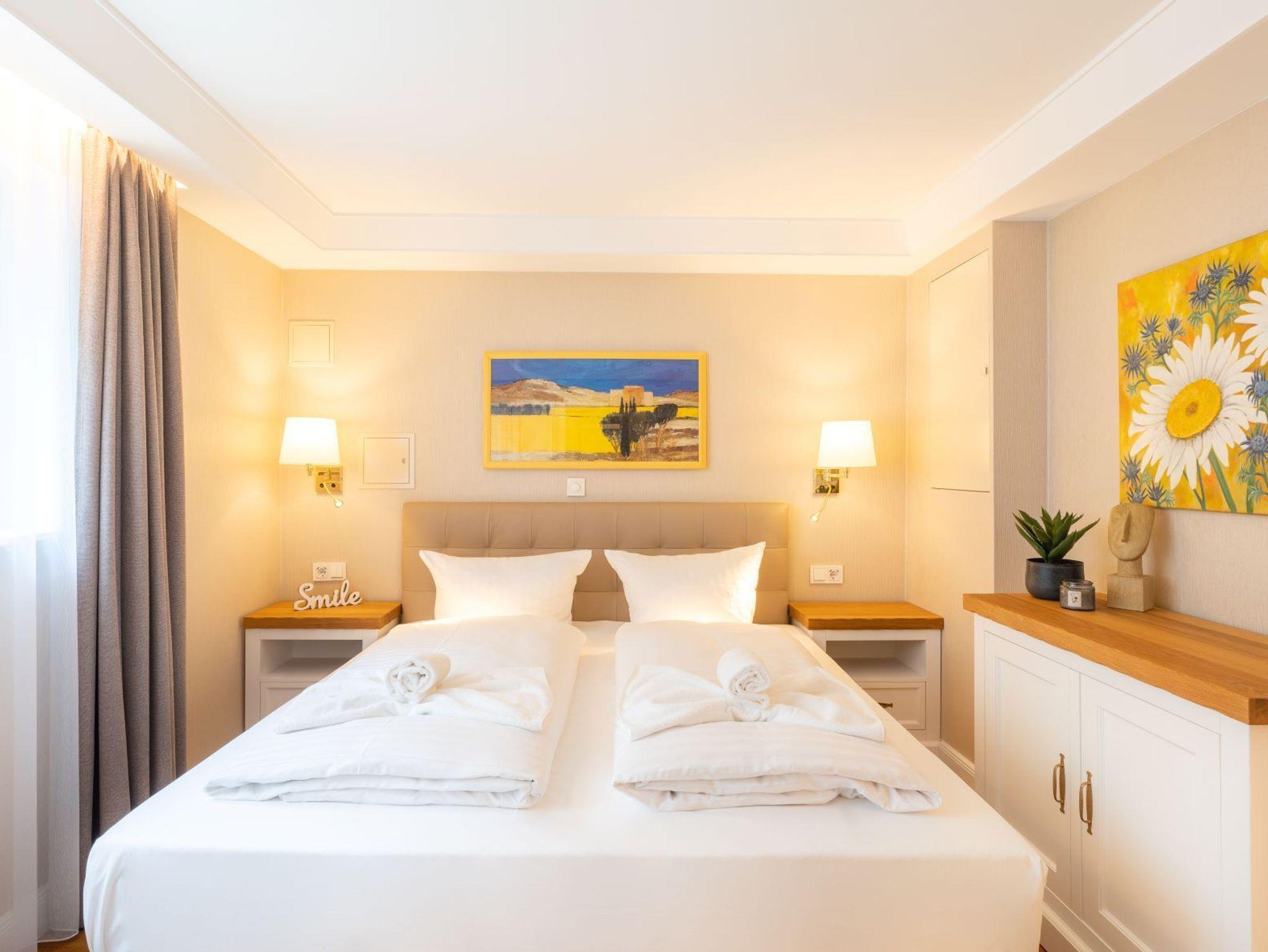 Im Schlafzimmer ist die Aufbettung mit einem Kleinkind bis 3 Jahre in einem Babyreisebett möglich. Das Babyreisebett können Sie gegen Gebühr hinzubuchen.