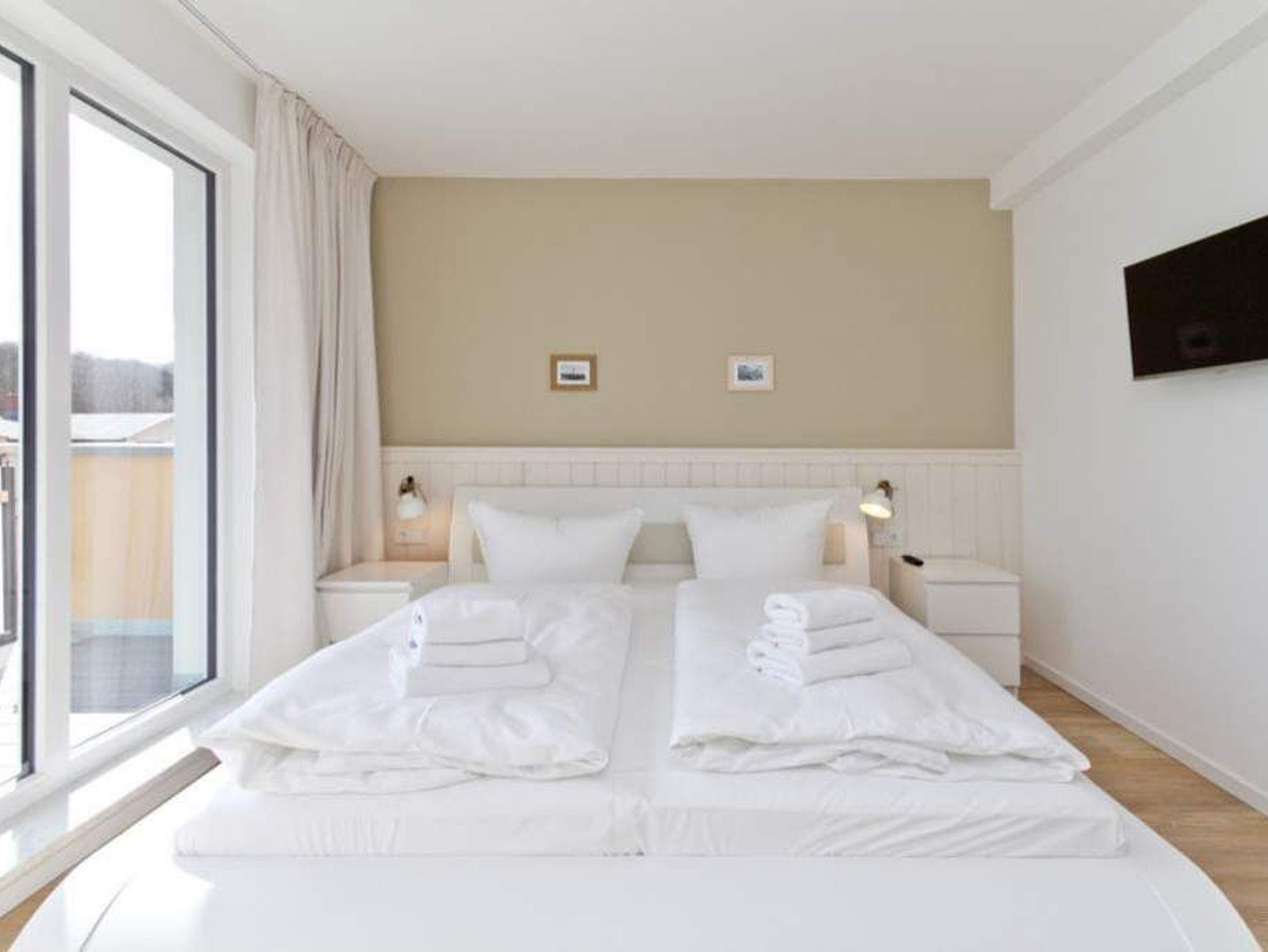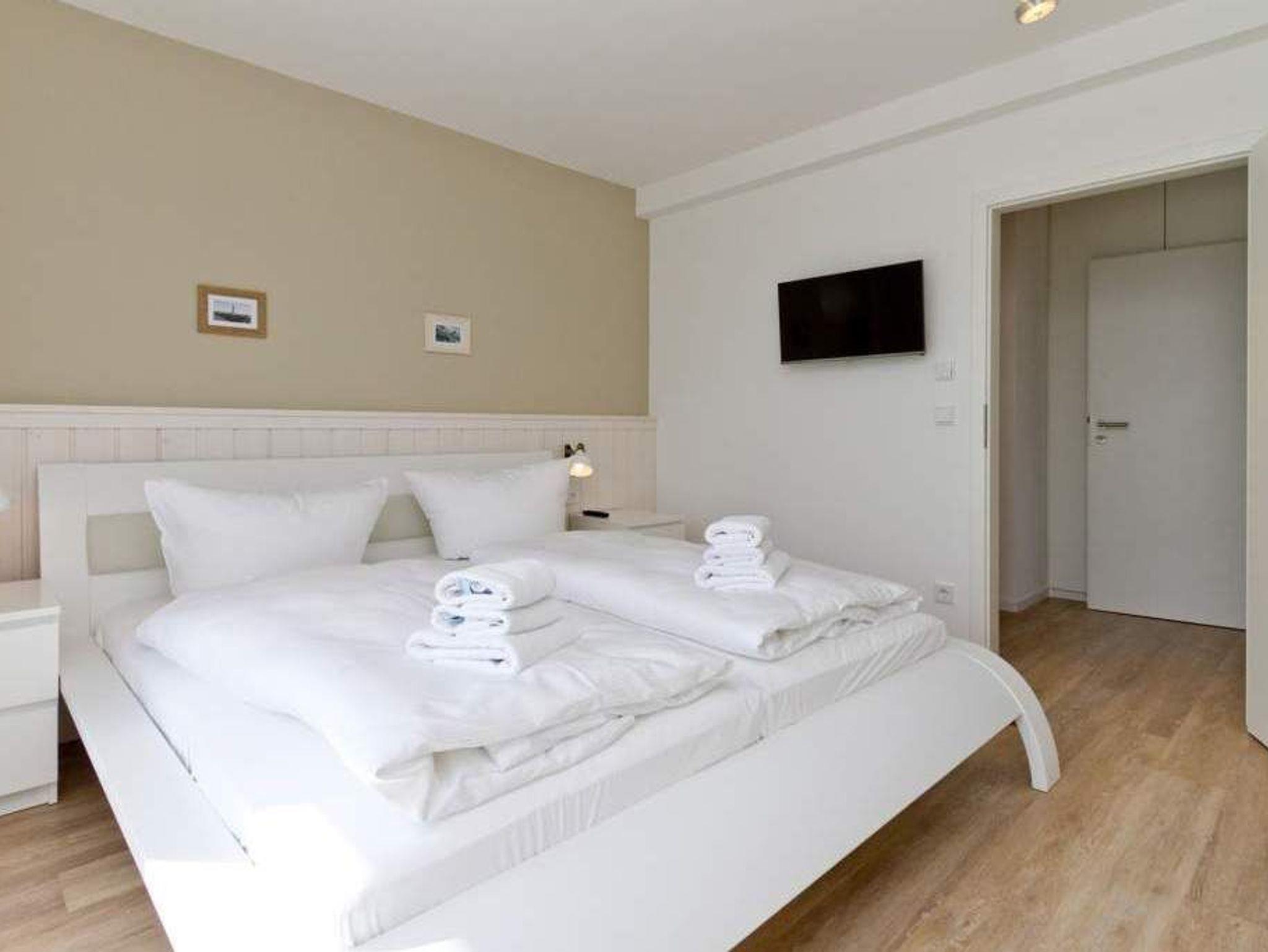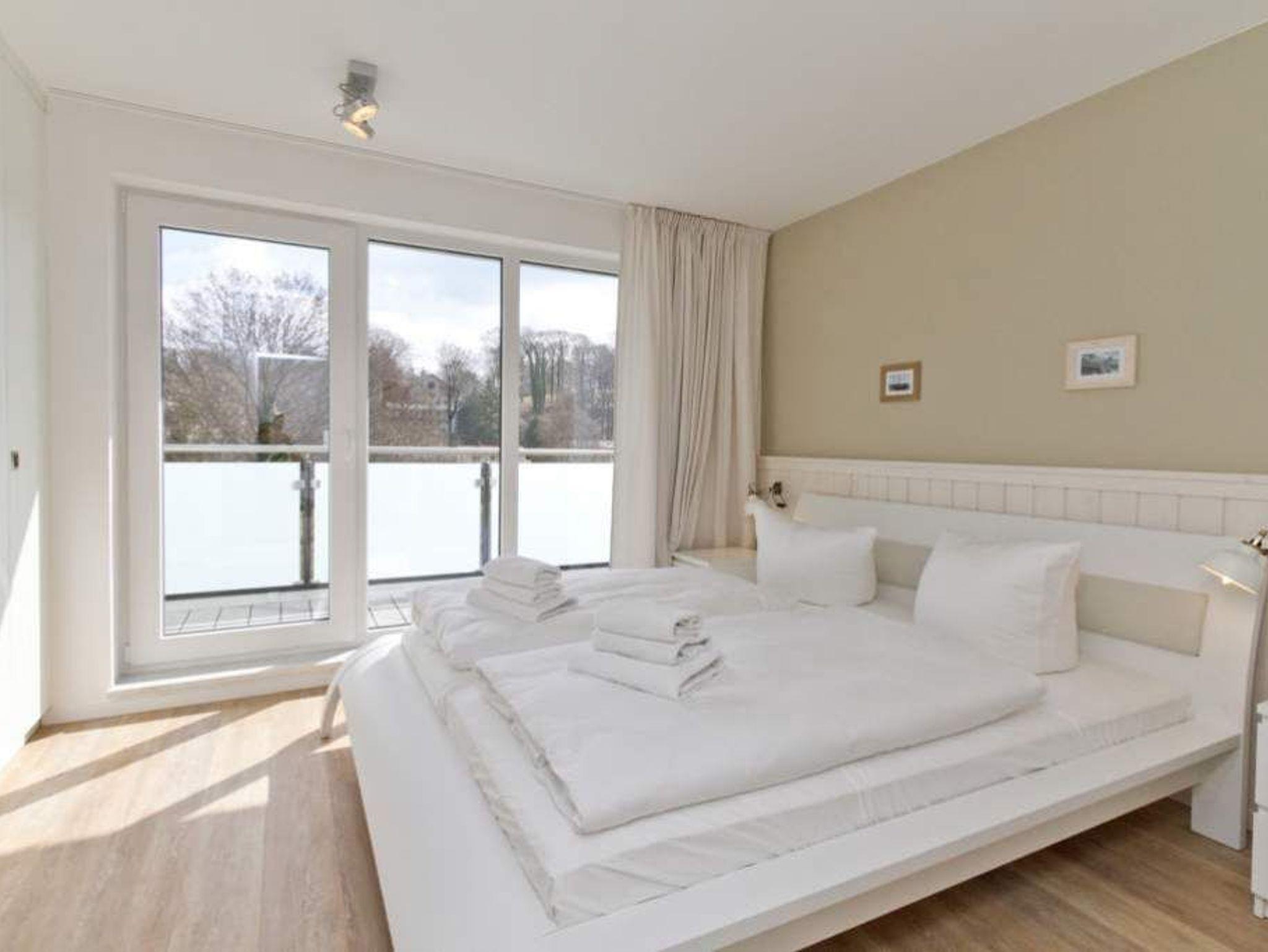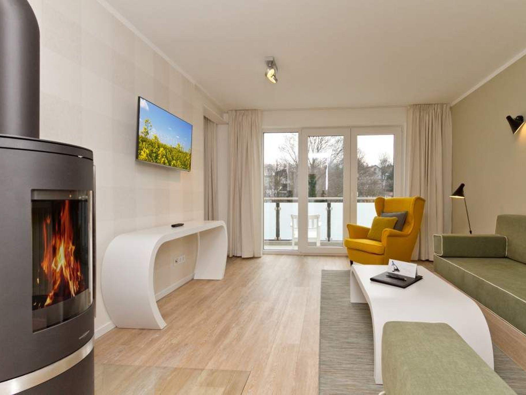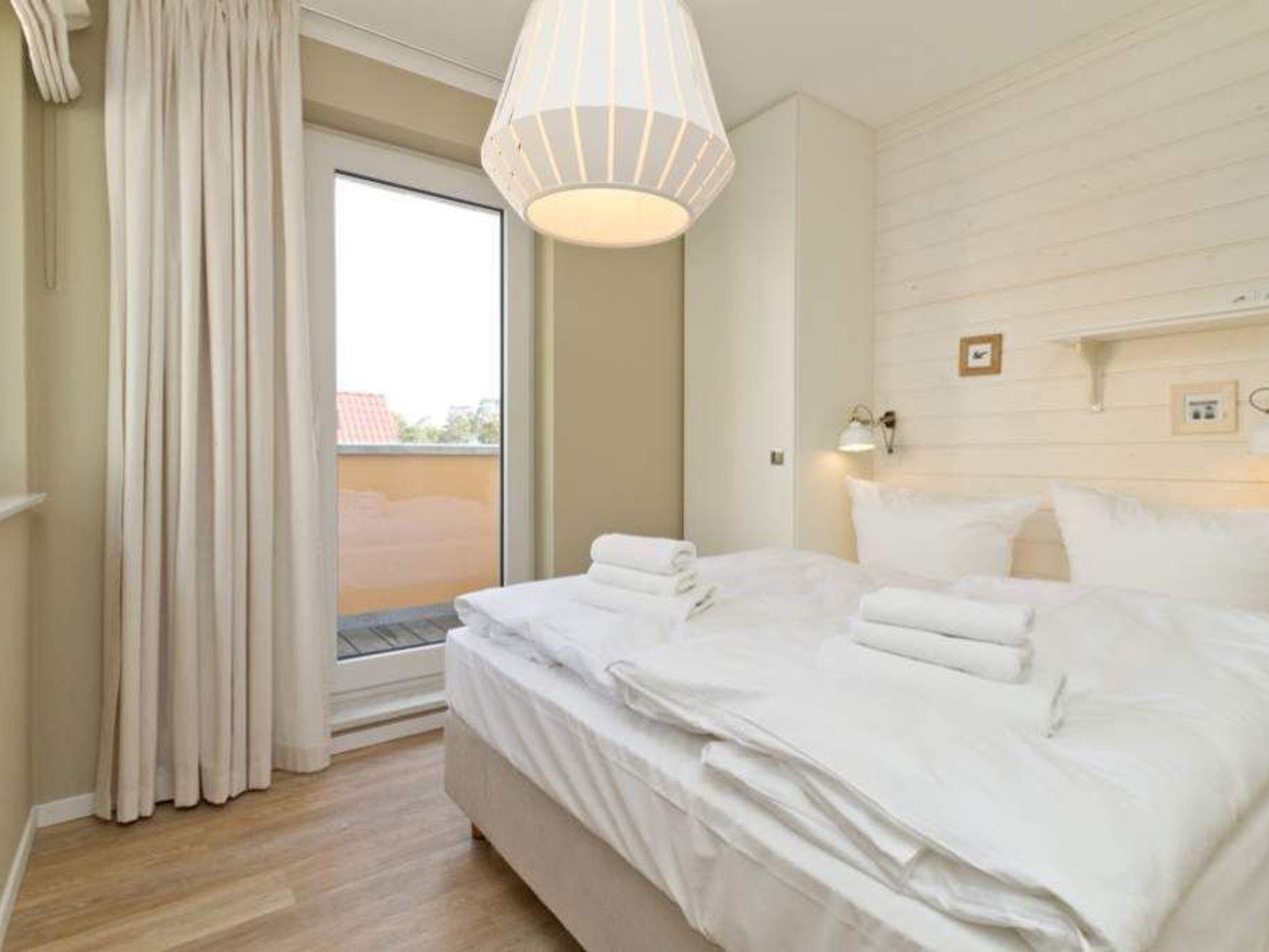 Wer luftige Leichtigkeit, viel Platz und eine stylische, minimalistische Einrichtung in einem harmonischen Farbkonzept liebt, wird sich in den beiden Etagen der Wohnung 6 absolut wohlfühlen. Wann haben Sie das letzte Mal gekocht, wie ein Sternekoch? Das tun Sie jeden Tag? Dann freuen Sie sich auf die großzügige und wunderschön gestaltete und komplett ausgestattete Küche. Metrofliesen und moderne Geräte verleihen der Küchenzeile ein schickes und funktionelles Design. Die große Arbeitsfläche aus Holz bietet reichlich Platz zum Austoben an Herd und Co. Ein schöner großer Holztisch lädt hernach zum ausgiebigen Schlemmen und Zusammensitzen ein. Spielt das Wetter mit, spricht nichts gegen ein Frühstück oder Abendessen auf dem Balkon. Da dieser nach Osten ausgerichtet ist, haben Sie hier schon zum Frühstück herrlichsten Sonnenschein und zum Nachmittag wunderbare Kühle an heißen Ostseesommertagen. Gleich nebenan wartet ein helles und großes Wohnzimmer mit Kaminofen und Flat-TV nur darauf, Ihnen schöne Stunden zu bescheren. Eine bequeme Design-Sofalandschaft und ein senfgelber Ohrensessel laden zum Entspannen ein. Auch von hier gibt es einen Zugang zum Balkon. Der knapp 81 Quadratmeter große Ferientraum setzt sich in einer zweiten Etage fort. In den beiden Schlafzimmern im schwedischen Landhausstil mit viel weißem Holz und sanften Naturtönen können bis zu vier Personen nächtigen. Ein Schlafzimmer besitzt ein großes Doppelbett (1,80 m x 2,00 m), einen Flat-TV und einen geräumigen Kleiderschrank. Außerdem gelangen Sie von hier ins schöne Masterbad mit Badewanne mit Regendusche, Waschtisch und WC. Das zweite Schlafzimmer beherbergt ein Boxspringdoppelbett (1,60 m x 2,00 m) und einen Kleiderschrank. Beide Zimmer haben Zugang zum umlaufenden Balkon. Die Wohnung verfügt über ein zweites Bad auf der Wohn- und Küchenetage. Dieses ist mit Dusche, Waschtisch und WC ausgestattet. Für einen rundum sorglosen Urlaub sind bei Anreise die Betten bezogen und Handtücher liegen bereit. Das WLAN kann kostenfrei genutzt werden. Ein Pkw-Stellplatz befindet sich am Haus.