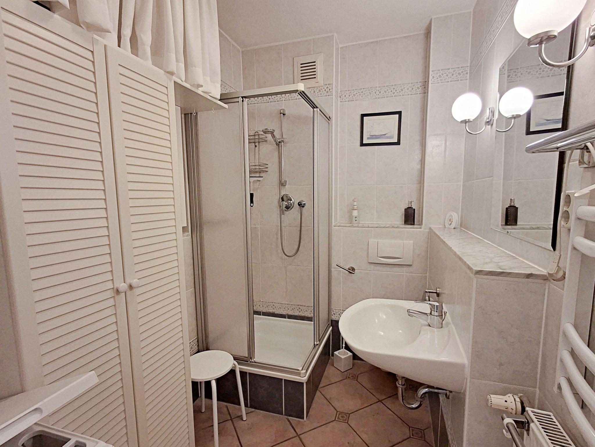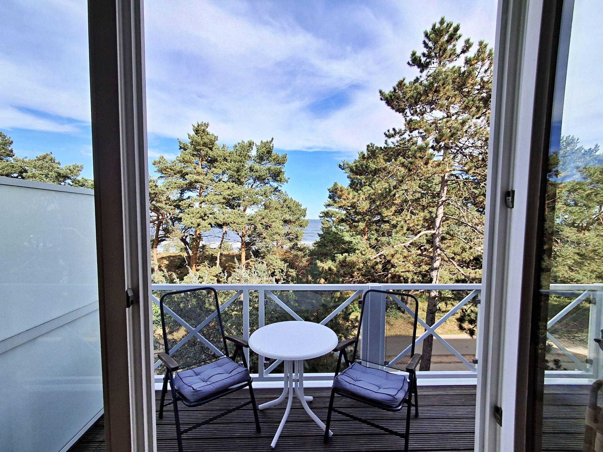 Genießen Sie die bodentiefen Fenster, die nicht nur viel Licht hereinlassen, sondern auch den Zugang zu Ihrem eigenen Balkon bieten - der perfekte Ort um den Blick auf die Ostsee zu bewundern. Für einen erholsamen Schlaf lassen sich die Fenster zur Nacht abdunkeln. Das Badezimmer ist mit einer Dusche/WC und einer Waschmaschine ausgestattet, sodass Sie alles haben, was Sie brauchen.