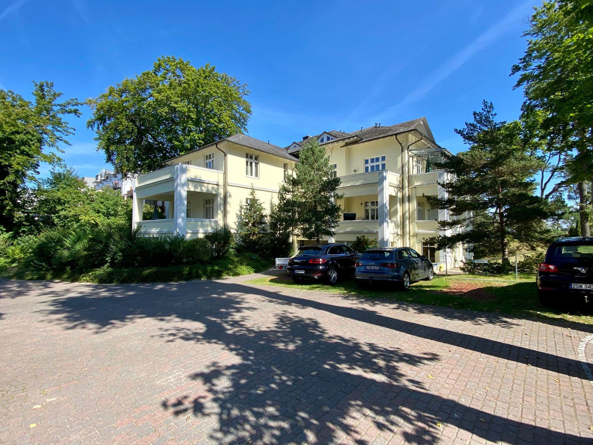 Die schöne Villa aus der Gründerzeit zeichnet sich durch unverwechselbare Architektur aus. 1995 wurde sie komplett saniert. 12 Wohnungen befinden sich im Haus. Den Gästen stehen Waschmaschine/Trockner sowie eine Fahrradunterstellmöglichkeit (verschlossen) zur Verfügung. Zu jeder Ferienwohnung gehört ein Stellplatz am Haus. Zum Strand sind es 50m. Zwischen den Seebrücken in Heringsdorf und Ahlbeck gelegen erreicht man beide Ortszentren in wenigen Gehminuten.