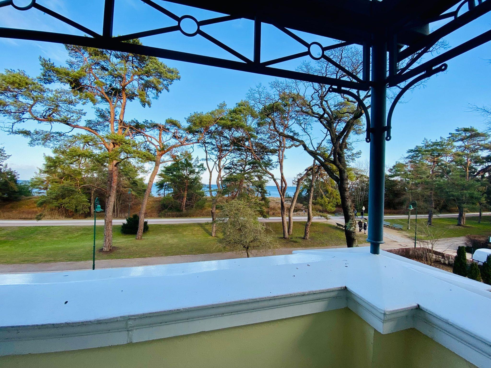 Die tolle Zweiraumwohnung 9C mit Meerblick befindet sich im zweiten Obergeschoss der Villa und ist über das Treppenhaus zu erreichen. Das gemütliche Wohnzimmer mit Sitzecke und Essbereich lädt zum verweilen ein. Vom Wohnzimmer aus gelangen Sie zu 2 der 3 Balkonen Richtung Ostsee und zur separaten Komplettküche. Die Wohnung hat ein geräumiges Schlafzimmer mit Doppelbett und Balkon. Zur Wohnung gehört ein Badezimmer mit Badewanne. Ein Stellplatz steht am Haus kostenfrei zu Verfügung.