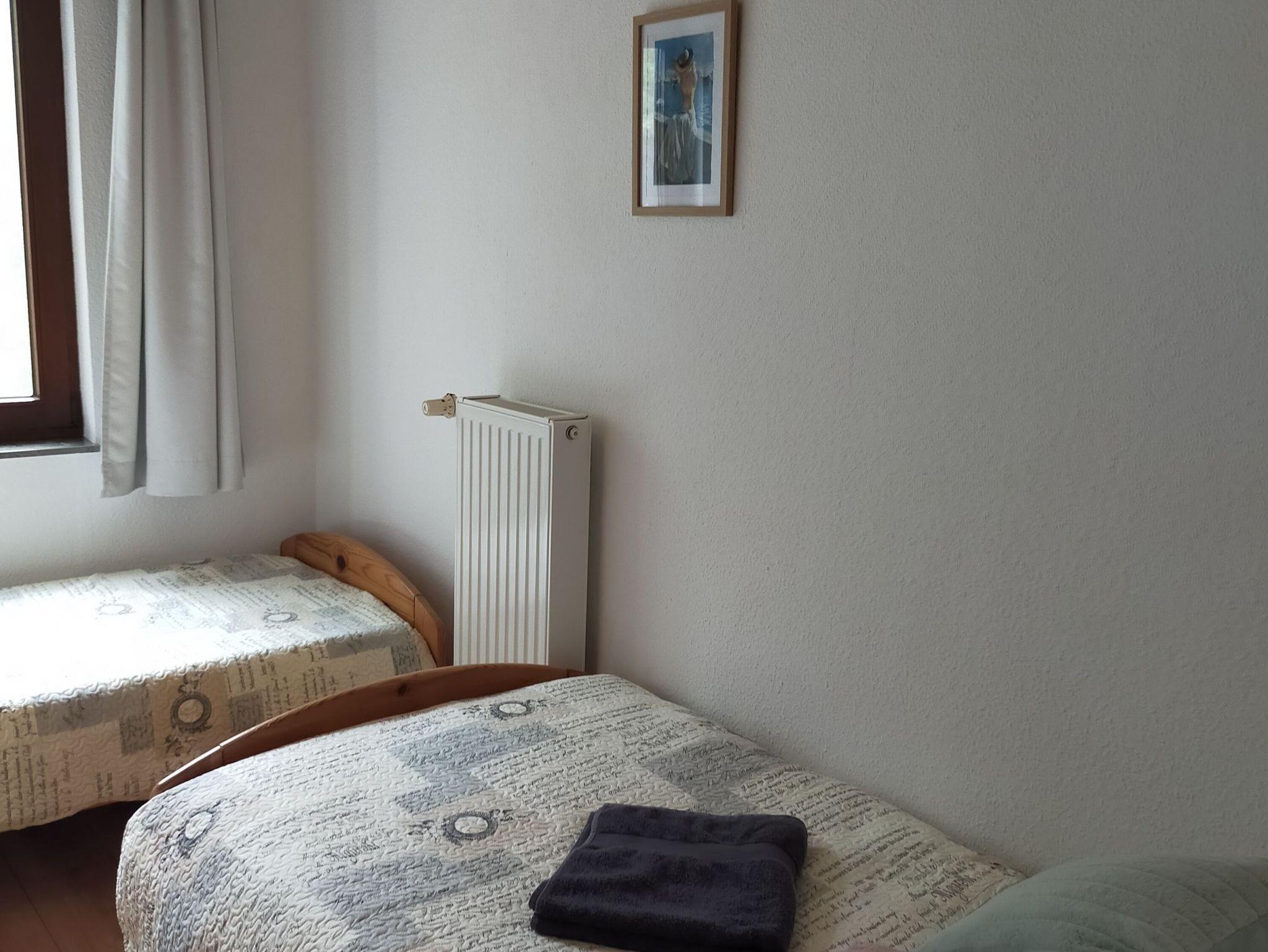 Dieser liebevoll eingerichtete Bungalow mit separatem Eingang bietet mit seinen 60 qm einen idealen Rückzugsort für bis zu 4 Erwachsenen und 1 Kleinkind bis 3 Jahre. Im hellen Wohnbereich gibt es eine gemütliche Couch, Sessel, Esstisch mit 5 Stühlen sowie einen Flachbild-TV. Eine komplette Küchenzeile mit Cerankochfeld, Backofen, Geschirrspüler, Mikrowelle, Toaster, Kaffeemaschine und Wasserkocher bietet beste Voraussetzungen für das gemütliche Frühstück oder das Abendessen zu fünft. Das größere Schlafzimmer beinhaltet ein Doppelbett (1,80 m x 2,00 m) mit einer Decke (2,00 m x 2,20 m), das kleinere Schlafzimmer hat zwei Einzelbetten. Das Badezimmer mit Fenster ist funktional gestaltet: mit Dusche, WC und Ablageflächen. Eine Terrasse mit Blick in den Garten lädt schon morgens dazu ein Ihren Kaffee zu genießen oder den Abend bei einem Glas Wein ausklingen zu lassen.