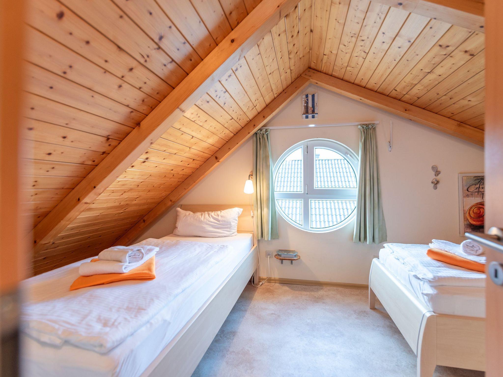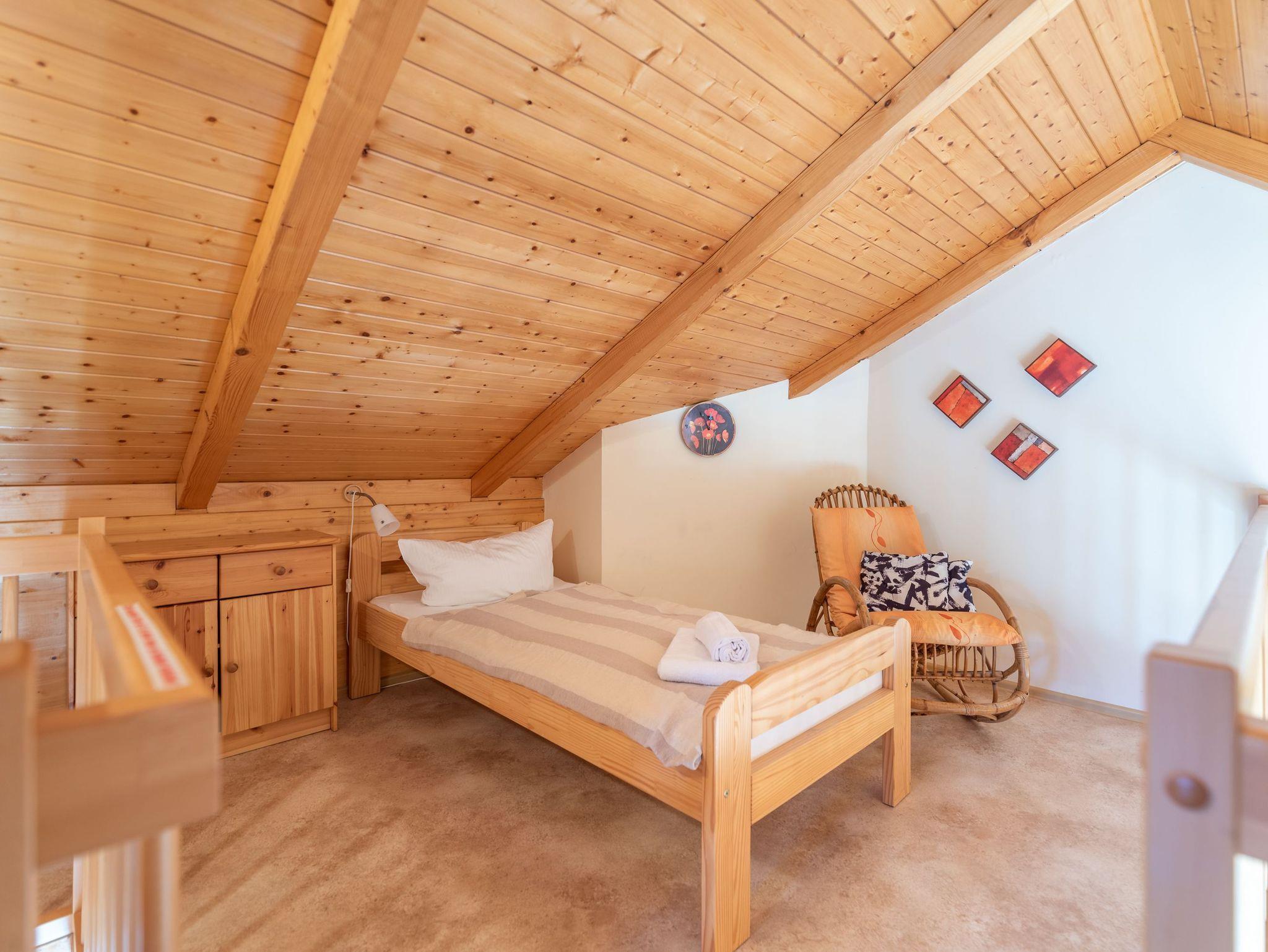 Das drittes Einzelbett steht auf dem großzügigen Dachraum (offen) neben dem 2. Schlafzimmer.