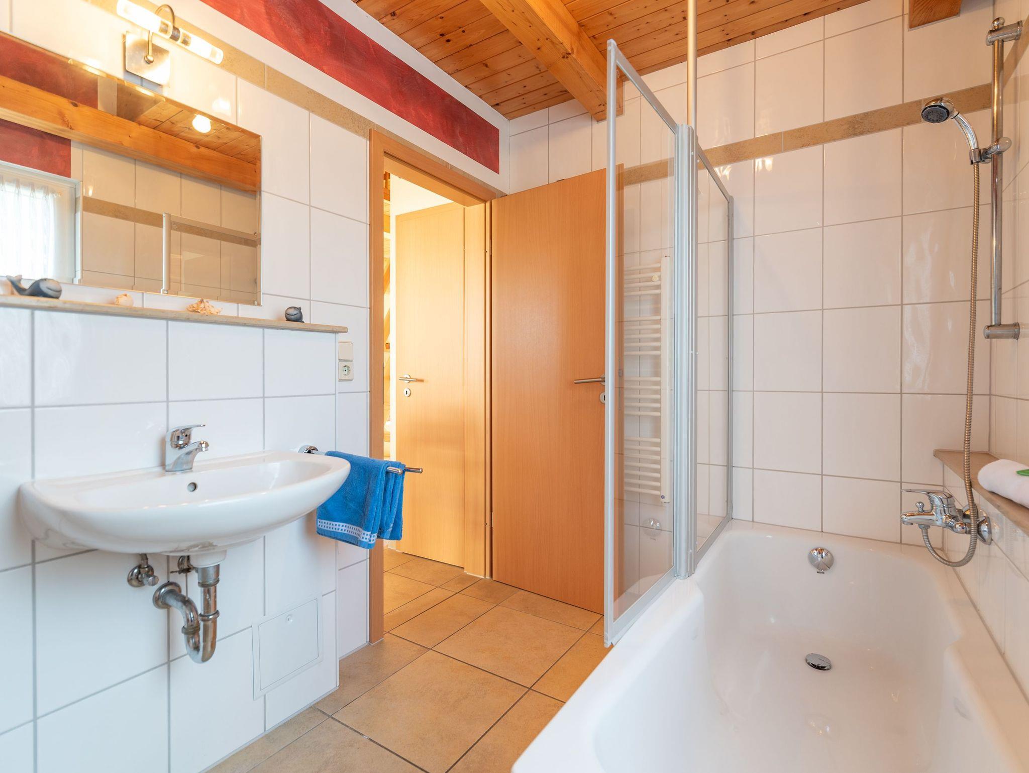 Die Wohnung umfasst zudem ein modernes Bad mit Duschwanne und ein gemütliches Wohnzimmer, das viel Platz zum Entspannen und Beisammensein bieten.
