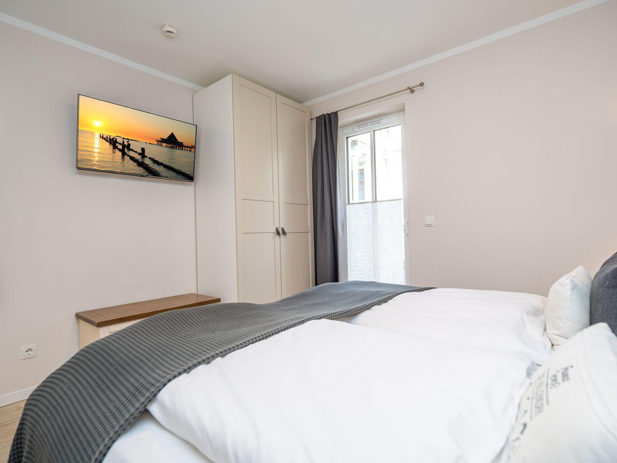 Auf 73 Quadratmetern bietet das Drei-Zimmer-Appartement Nummer 3 im 1. Obergeschoss alles, was man sich für einen entspannten Urlaub an der Ostsee nur wünschen kann. Viel Platz und eine Einrichtung zum Pudelwohlfühlen ? ein kleines Paradies für bis zu vier Personen wartet auf Sie. Das helle und geräumige Wohn-Esszimmer ist mit viel Geschmack und Zeitgeist eingerichtet. Hier spürt man die Liebe zum Interieur und zum Detail. Nordisches Landhaus-Design durchzieht jeden Raum. Naturmaterialien, ausgesuchte Accessoires und viel Komfort bestimmen die Ausstattung. Ob Sofa, Ohrensessel oder uriger Korbstuhl ? lassen Sie sich fallen und entspannen Sie einfach mal drauf los. Hier wird es Ihnen sicher leicht fallen. Vom Wohnzimmer geht?s auf einen schönen Süd-Balkon. Sonnenhungrige können hier neue Energie tanken. Ob Großer Flat-TV, hochwertige Musikanlage oder Kamin ? Unterhaltung wird hier zur puren Entspannung. Das offene Wohn-Esszimmer bietet mit seinem großen, runden Tisch und den bequemen Stühlen einen schönen Essplatz für genüssliche und gesellige Stunden. Die offene Küche ist mit allem ausgestattet, das Sie zum Kochen, Braten oder Backen brauchen. Hochwertige Markengeräte sind Ihnen fleißige Küchenhelfer. Vom Backofen, über den Geschirrspüler bis hin zur Kaffeemaschine ist alles da. Zwei Schlafzimmer schenken echtes Schlafvergnügen mit ihren komfortablen Boxspringdoppelbetten (1,80 m x 2,00 m). Ein zweiter Balkon in Ostausrichtung ist von beiden Zimmern aus begehbar. Genießen Sie hier schon morgens die aufgehende Sonne. In jedem Schlafzimmer gibt es einen Flat-TV. Viel Ablagefläche bieten die geräumigen Schränke. Ebenfalls zweifach vorhanden, ist das Badezimmer. Dusche, Waschtisch und WC gehören zur Ausstattung in beiden Räumen. Im Masterbad erwartet Sie darüber hinaus eine Finnische Sauna, in der Sie nach Herzenslust bei kuschelig warmen Temperaturen entspannen können. Handtücher liegen bei Anreise bereit und die Betten sind frisch bezogen. In der Tiefgarage ist für Sie ein Stellplatz reserviert. In dieser Wohnung sind Haustiere nicht erlaubt - jedoch ist diese nicht garantiert allergikerfreundlich.