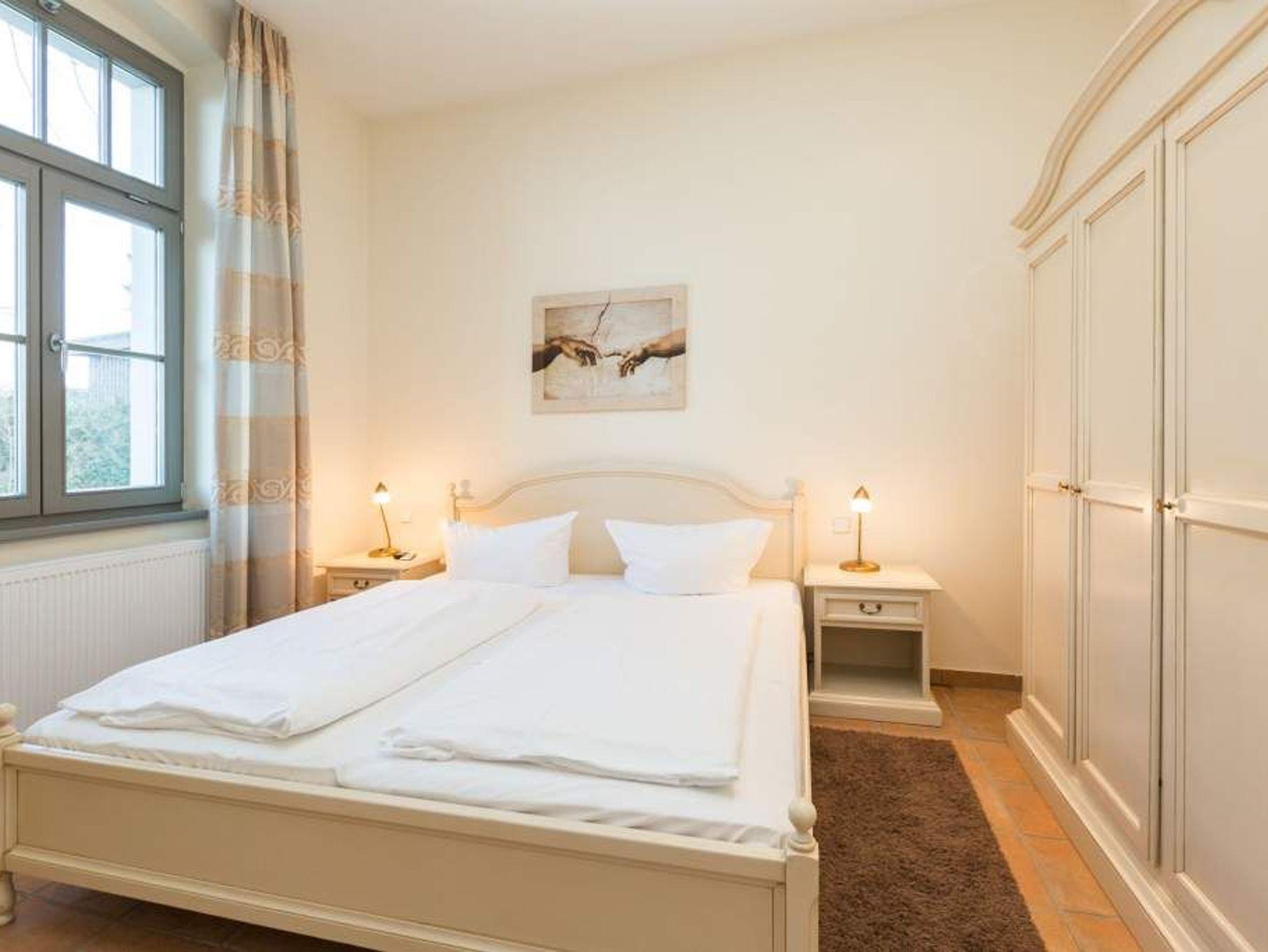 Es sich so richtig gut gehen lassen, abschalten, ausspannen und neue Energie tanken ? in dem 3-Zimmer-Appartement Nummer 7/8 im ersten Stock der Villa Sana Marino in Heringsdorf ist das ein echtes Kinderspiel. Über den Dächern des mondänen Seebades gelegen, können Sie vom Balkon ihres Feriendomizils sogar auf die Ostsee schauen. Die beiden Schlafzimmer mit ihren Doppelbetten (1,80 m x 2,00 m) und die gemütliche Wohnzimmercouch mit Schlaffunktion (1,20 m x 2,00 m) bieten Platz für maximal fünf Personen. Im Wohnzimmer sowie in einem der Schlafzimmer befinden sich Flat-TVs. Alle drei Zimmer sind geschmackvoll und komfortabel eingerichtet. Die offene und voll ausgestattete Küche mit Herd, Geschirrspüler, Mikrowelle, Wasserkocher, Toaster verfügt über einen großzügigen Essplatz und führt geradewegs auf den Balkon hinaus. Die Wohnung besitzt zwei Bäder. Eines ist mit einer Badewanne, Waschtisch und WC ausgestattet; das andere mit einer Dusche, einem Waschtisch und ebenfalls einem WC. Damit Sie sich in Ihrem Urlaub wirklich um nichts kümmern müssen, liegen Handtücher für Sie bereit und die Betten sind bezogen (als Erstausstattung). Um auf das Grundstück zu gelangen, erhalten Sie bei Ihrer Anreise eine Fernbedienung. Denn die Parkanlage ist umzäunt. Auf dem Gelände sind dann zwei Pkw-Stellplätze für Sie vorgehalten. Im Keller finden Sie eine Waschmaschine und einen Trockner (gegen Gebühr).