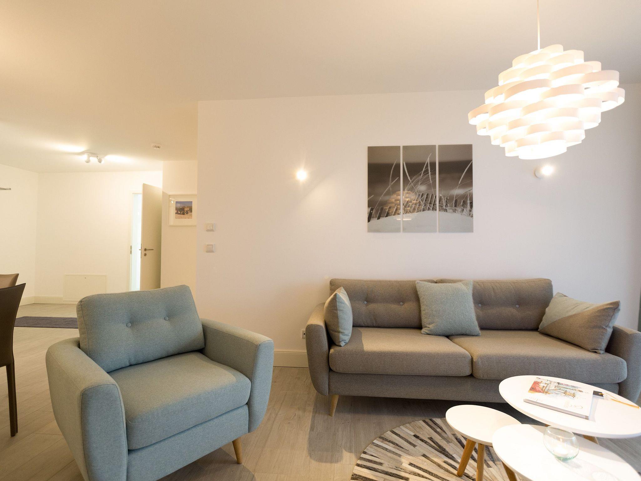 Er ist ein echter Hingucker schon beim Eintreten in dieses elegante und stilvolle Urlaubsappartement im Erdgeschoss der Dünenresidenz Heringsdorf der große, in Stein gefasste Elektro-Kamin. Sein warmes Licht sorgt nicht nur an kühlen Tagen für wohlige Behaglichkeit. Es wartet eine Wohlfühlwelt auf Sie, die auf 80 Quadratmetern reichlich Platz für bis zu vier Erwachsene bietet. Das gesamte Interieur ist harmonisch aufeinander abgestimmt. Stylisch sind auf alle Fälle die nordischen Design-Lampen. Abschalten und den Alltagsstress vergessen, lässt es sich auf der Sitzgruppe mit gemütlicher Couch und Blick auf den Kamin oder den großen Flat-TV wunderbar. Machen Sie die großen, bodentiefen Wohnzimmerfenster auf, lassen sie das Meeresrauschen vom nur 50 Meter entfernten Ostseestrand und die lichten Sonnenstrahlen in ihr Domizil oder entspannen Sie auf der 20 Quadratmeter großen Südterrasse. Zum Wohnbereich gehört eine helle, offene Küche mit großem Esstisch. Mit allem ausgestattet, was das Kochherz höher schlagen lässt, können Sie hier das gemütliche Zusammensitzen und Schlemmen wahrhaft zelebrieren. Haben Sie Spaß und einen erholsamen Schlaf in den beiden Schlafzimmern. Denn hier locken bequeme Doppelboxspringbetten (einmal 1,80 m x 2,00 m und einmal 1,60 m x 2,00 m), um Ihnen die Nächte zu versüßen. Das Badezimmer ist sehr geräumig und mit Waschtisch, WC und großer Echtglas-Dusche ausgestattet. Die Betten sind bezogen und Handtücher liegen bei Ankunft bereit. Zu der Wohnung gehört ein Pkw-Stellplatz in der Tiefgarage (max. Einfahrtshöhe 1,93 m).