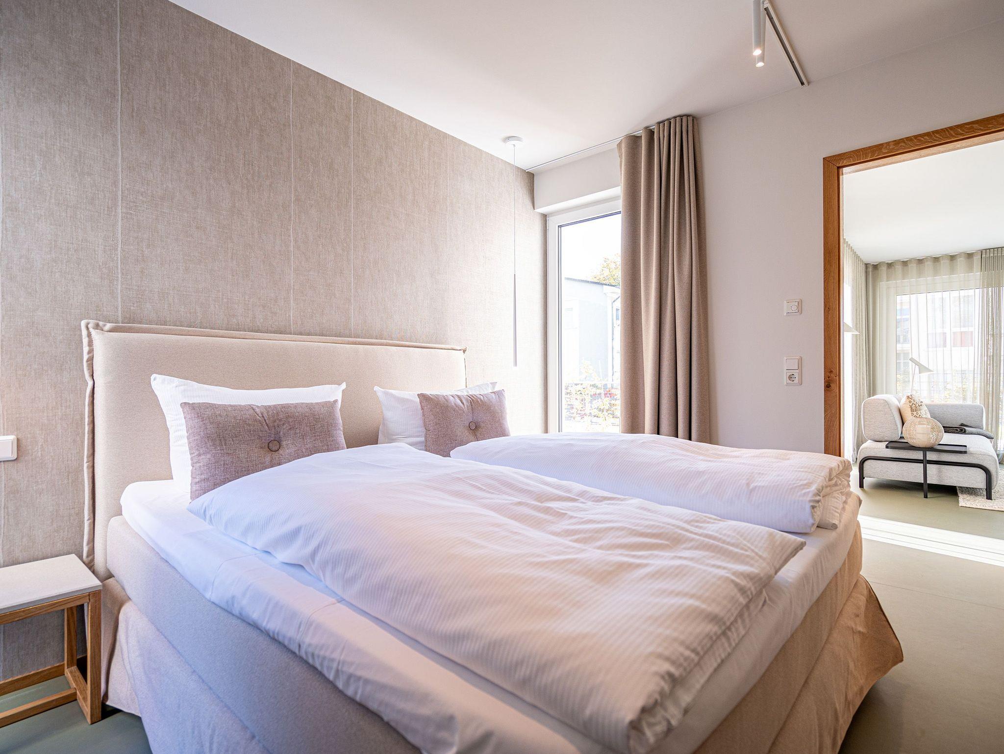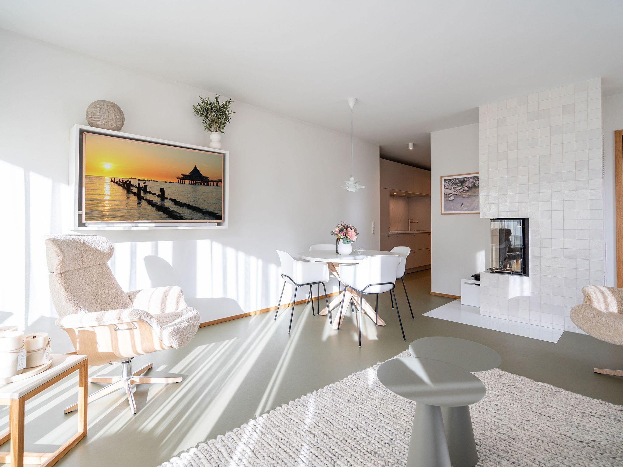 Herzlich willkommen in der hellen und modernen 3-Raum-Ferienwohnung Nr. 03 im Erdgeschoss, die Platz für bis zu 4 Personen bietet. Mit einer großzügigen Fläche von 87 Quadratmetern erwartet Sie hier ein komfortables Urlaubserlebnis. Der offene Wohnbereich empfängt Sie mit einer gemütlichen Sitzgruppe, einem Flachbildfernseher und einem Kaminofen, der für eine behagliche Atmosphäre sorgt. Von hier aus haben Sie direkten Zugang zur 15 Quadratmeter großen Süd-West-Terrasse, auf der Sie die Sonne und frische Luft genießen können. Ein Essplatz für 4 Personen lädt zu geselligen Mahlzeiten ein. Die voll ausgestattete Küchenzeile bietet alles, was Sie für die Zubereitung von köstlichen Mahlzeiten benötigen, darunter einen Backofen mit integrierter Mikrowelle, einen Induktionsherd sowie Kühl- und Gefrierschrank. Die Wohnung verfügt über 2 Schlafzimmer, jeweils mit komfortablen Boxspringdoppelbetten (1,80m x 2,00m), geräumigen Kleiderschränken und Flachbildfernsehern für Ihre Unterhaltung und Entspannung. Für Ihr Wohlbefinden sorgt ein innenliegendes Masterbad mit Dusche, Waschtisch und WC. Zusätzlich steht Ihnen ein zweites Tageslichtbad zur Verfügung, das mit einer Dusche, einem Doppelwaschtisch, einer hochwertigen Massivholzsauna und einem WC ausgestattet ist. In einem separaten Hauswirtschaftsraum finden Sie eine Waschmaschine, die Ihnen während Ihres Aufenthalts zur Verfügung steht. Ein Außenstellplatz für Ihr Auto ist ebenfalls vorhanden, damit Sie bequem an- und abreisen können.