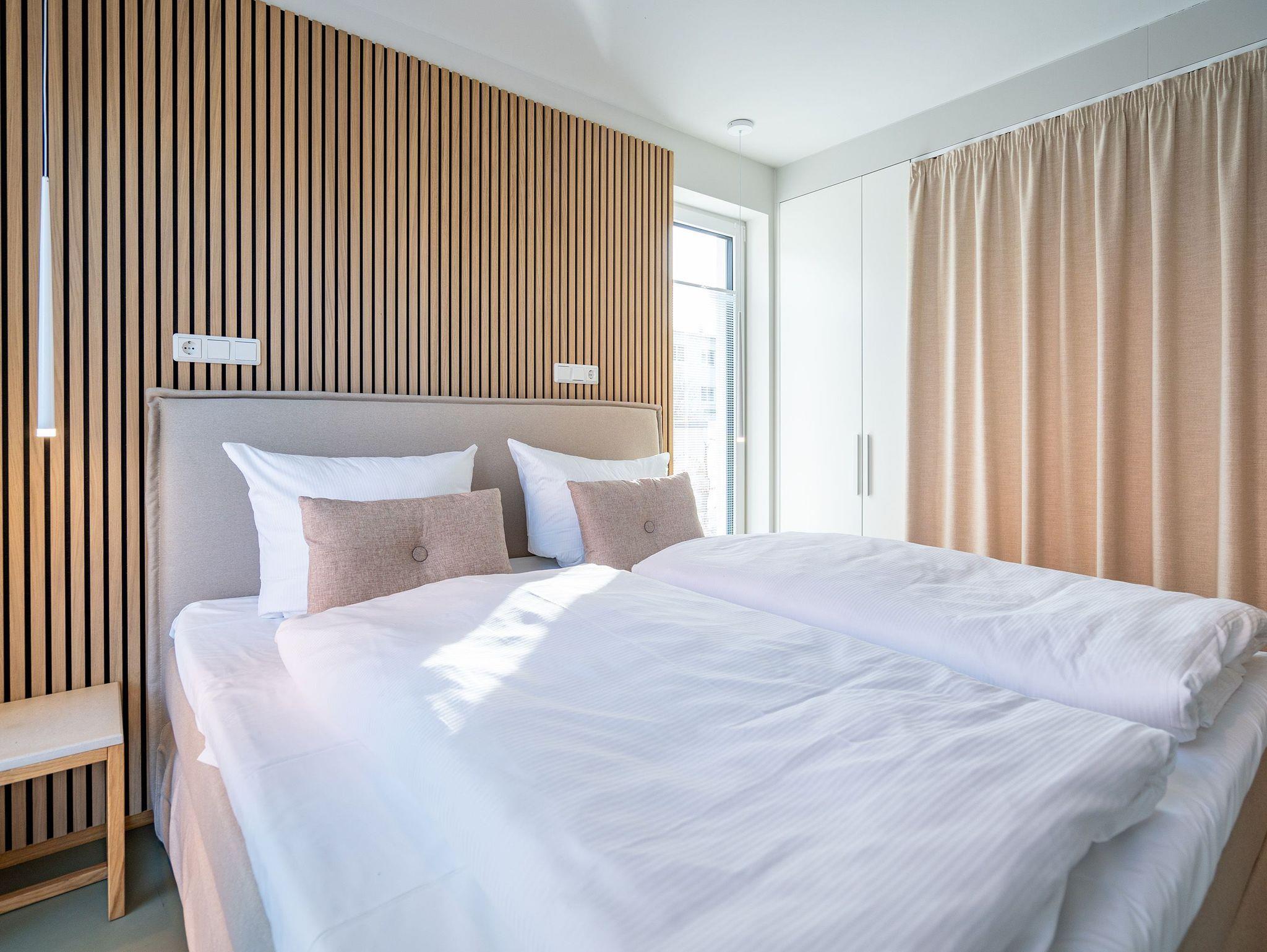 Nur 50m vom Strand entfernt und in einer kleinen Nebenstraße gelegen, empfängt Sie unser neues Domizil Quartier am Strand. Als zweites Objekt am Platz direkt an der schönen Strandpromenade gelegen, fügt sich die Anlage stilvoll zwischen Bäderstilvillen und Strandumgebung ein. Die insgesamt 9 Appartements und 2 Penthouses verfügen über helle und modern eingerichtete 2 bis 3 Zimmer. An kühleren Tagen sorgen Saunen und Kamin, die zu jedem Appartement gehören, für Entspannung in Ihrem Urlaub. Dem Klang der Wellen können Sie bequem von den Terrassen, Balkonen und Dachterrassen aus zuhören, denn jedes Appartement besitzt einen separaten Außenbereich. Der Blick auf die Ostsee ist Ihnen aus einigen Appartements möglich, aus den Penthouses garantiert. Offene Wohnbereiche und voll ausgestattete Küchen komplettieren das neue Objekt Quartier am Strand. Zudem gibt es eine hauseigene Tiefgarage (Einfahrthöhe 2,05 m) sowie einen Außenstellplatz (für Appartement 3), so dass ein eigener PKW-Stellplatz garantiert ist. Zu den weiteren Annehmlichkeiten des Objektes zählt ein Fahrstuhl, der Sie von der Tiefgarage bequem bis in die Etage Ihres Urlaubsdomizils leitet. Kostenfreies W-Lan rundet das Domizil ab. Wir wünschen Ihnen einen schönen Urlaub!