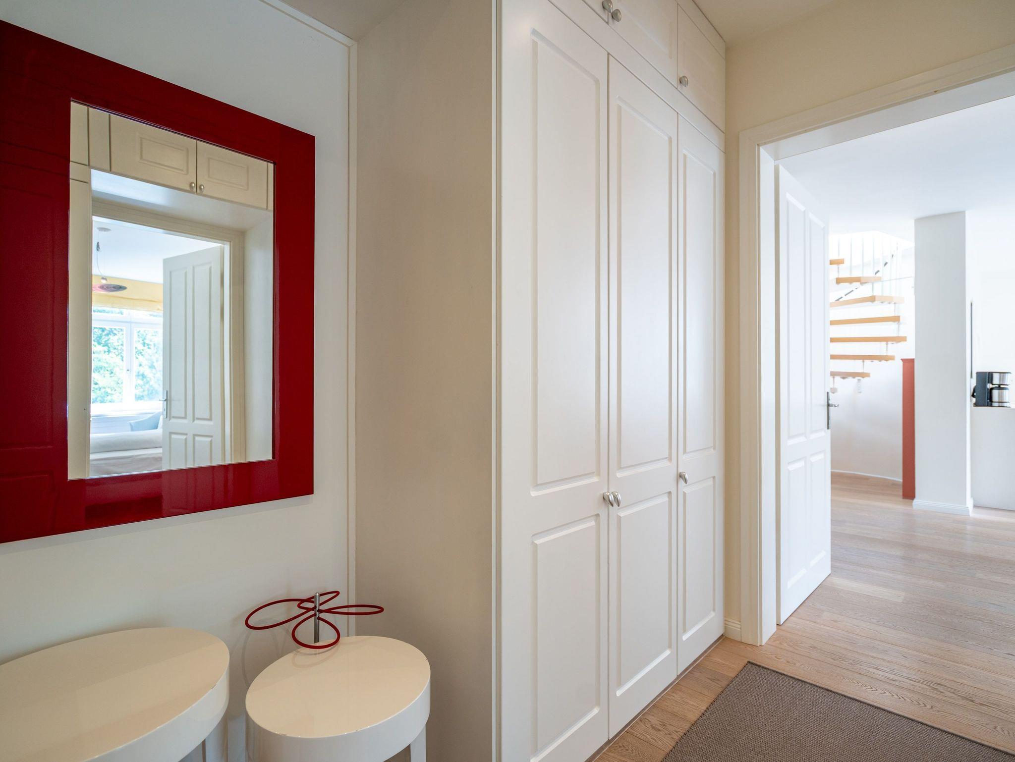 Im Dachgeschoss der Villa Hintze erwarten Sie großzügige 125 qm Luxus! Die neu gestaltete Ferienwohnung 13 (für maximal 4 Personen) offeriert Ihnen ein Wohnambiente der besonderen Art und jede Menge Ausblick auf die Ostsee! Helle, großzügige Räume, moderne Kunst und Möbel von bekannten Designern erfüllen auch anspruchsvolle Urlaubswünsche. Der Wohnbereich mit Sitzgruppe vor dem Kamin und Flat-TV wird ergänzt durch den exklusiven Küchenbereich mit schönem Essplatz. Von hier hat man Zugang zum sonnigen Südbalkon der mit Gartenmöbeln und Sonnenliege von Garpa ausgestattet ist. An den Masterbedroom mit Doppelbett und großem Einbauschrank ist ein wunderschönes Bad mit Badewanne, großer Echtglasdusche und Doppelwaschtisch angegliedert. Und das Beste - schon morgens beim Aufwachen blicken Sie von Ihrem Bett aus über die Dächer der ersten Reihe auf das Meer! Ein zweites, kleineres Schlafzimmer bietet ebenfalls ein Doppelbett (1,60m) und auch ein zweites Bad mit Dusche steht zur Verfügung. Ein ganz besonderes Highlight ist die riesige 100 qm Dachterrasse (über die wohnungseigene Wendeltreppe zu erreichen), die einen traumhaften Blick auf das Meer und Heringsdorf bietet. Hier schaffen die Sitzgruppe, der Strandkorb oder eine bequeme Liegewiese genug Auswahlmöglichkeiten zum Relaxen. In einem separaten Abstellraum auf dem Hausflur können Waschmaschine und Trockener genutzt werden. Für Ihren Komfort sind die Betten bei der Anreise bezogen und Handtücher liegen bereit. Ein Pkw-Stellplatz steht auf dem abgeschlossenen Grundstück zur Verfügung. Das WLAN in der Wohnung ist kostenlos nutzbar.