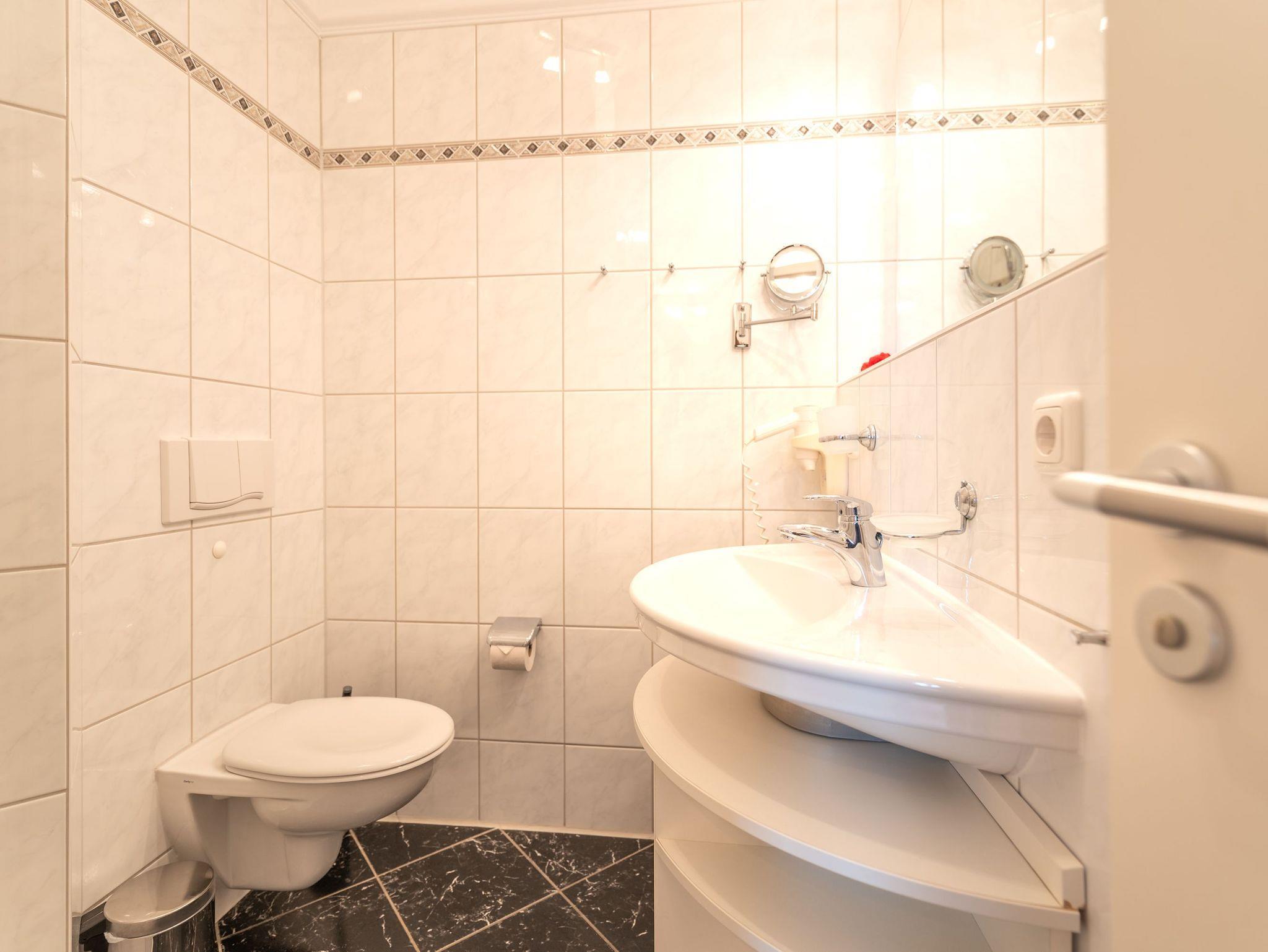 Das Badezimmer überzeugt mit Fußbodenheizung, Handtuchheizkörper, Kosmetikspiegel und Fön. Ein zusätzliches Gäste-WC sorgt für praktischen Komfort, damit der Morgen entspannt starten kann.