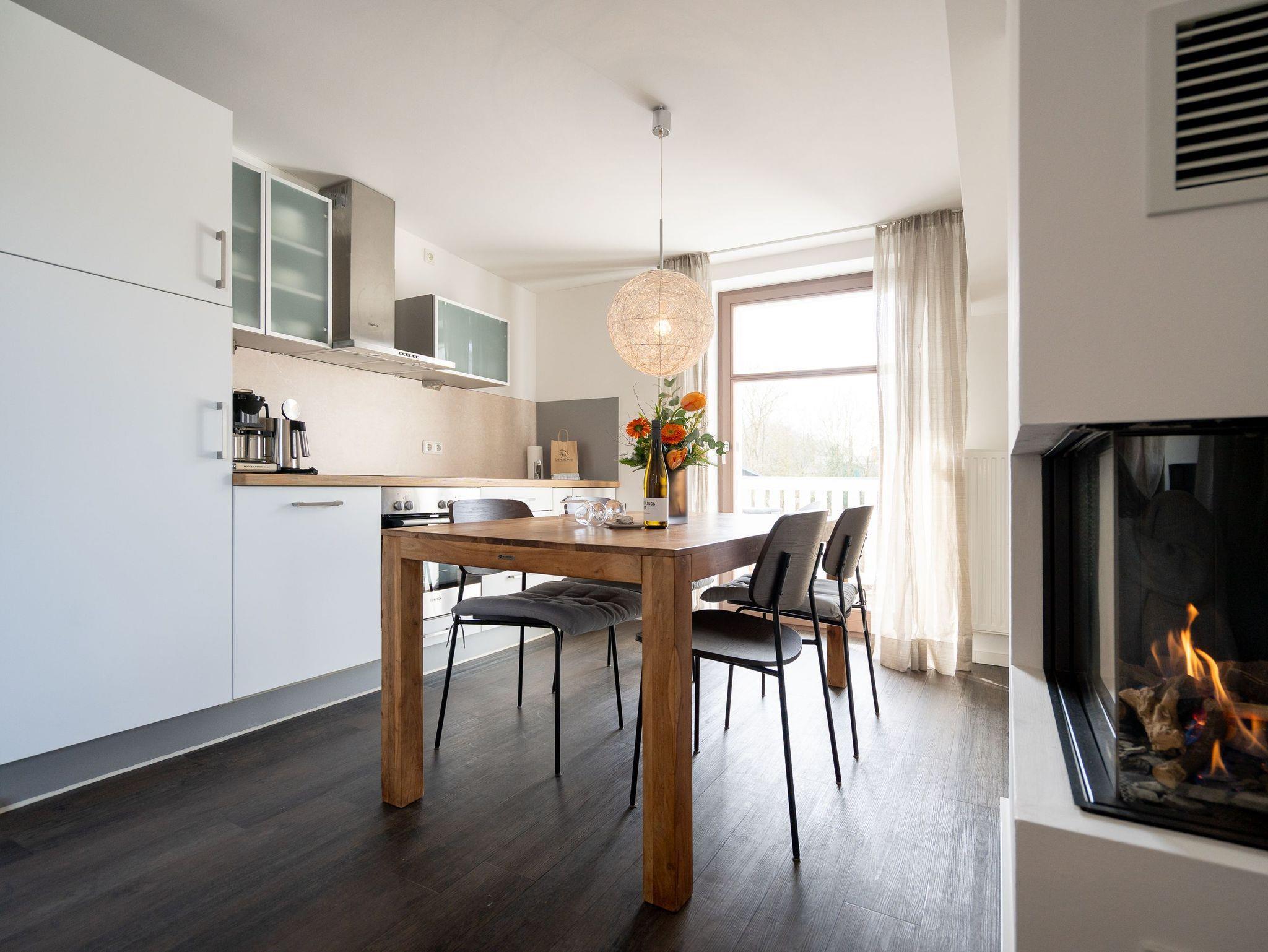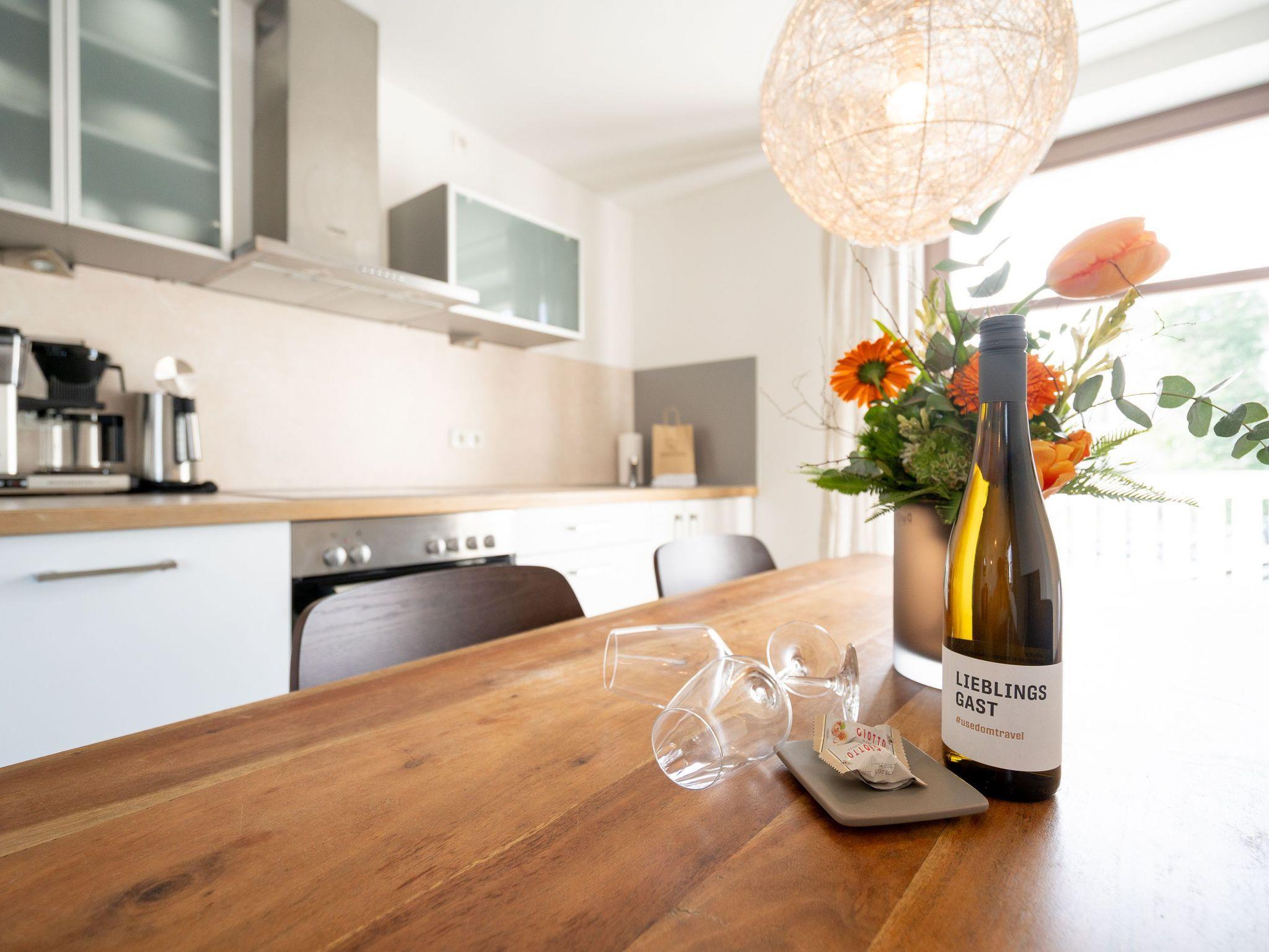 Im Dachgeschoss dieses charmanten Hauses erwartet Sie auf 61 qm eine modern gestaltete 3-Raum-Ferienwohnung, die Platz für bis zu 4 Personen bietet. Freuen Sie sich auf eine geschmackvolle Einrichtung und liebevoll ausgewählte Details, die Ihrem Aufenthalt das gewisse Etwas verleihen. Der Wohnbereich lädt mit einer gemütlichen Couch, einem Flat-TV und einem eleganten Gas-Designkamin, der bequem per Fernbedienung gesteuert werden kann, zum Entspannen ein. Gleich daneben finden Sie die offen gestaltete, voll ausgestattete Küche sowie einen einladenden Essbereich. Von hier aus gelangen Sie direkt auf den Südbalkon ? perfekt, um die Sonne zu genießen oder den Tag bei einem Glas Wein ausklingen zu lassen. Zwei Schlafzimmer mit komfortablen Boxspringdoppelbetten bieten erholsame Nächte. Das moderne Badezimmer mit Dusche rundet das Angebot ab. Für zusätzlichen Komfort sind die Betten bei Anreise für Sie bezogen und Handtücher liegen bereit. Ein eigener Pkw-Stellplatz direkt am Haus ist selbstverständlich inklusive. Auf Wunsch stellen wir Ihnen gerne ein Kinderreisebett (ohne Matratze und Bettzeug) sowie einen Hochstuhl gegen einen kleinen Aufpreis zur Verfügung. Das kostenfreie WLAN sorgt dafür, dass Sie jederzeit online bleiben können. Genießen Sie Ihren Aufenthalt ? wir freuen uns auf Sie!