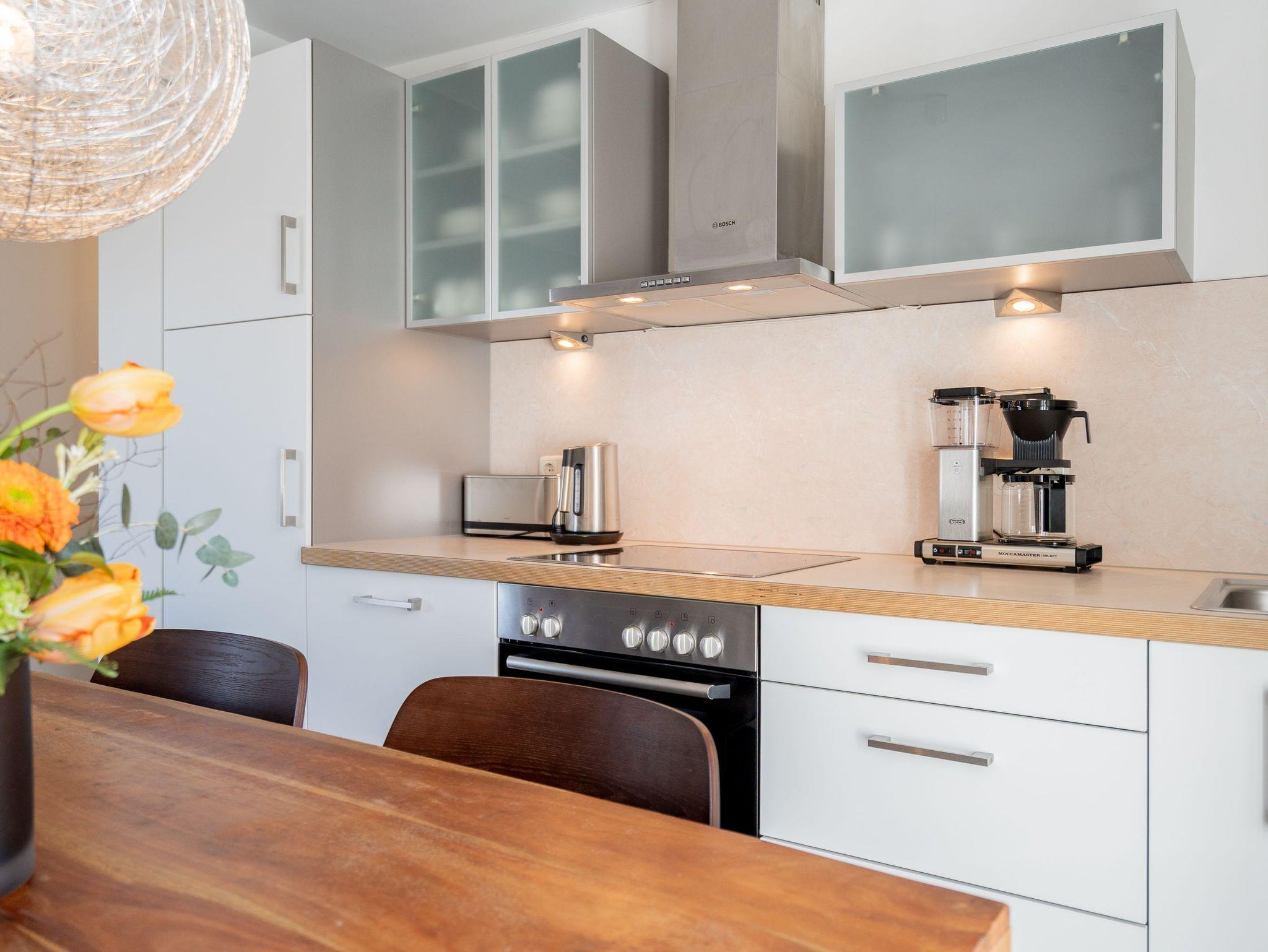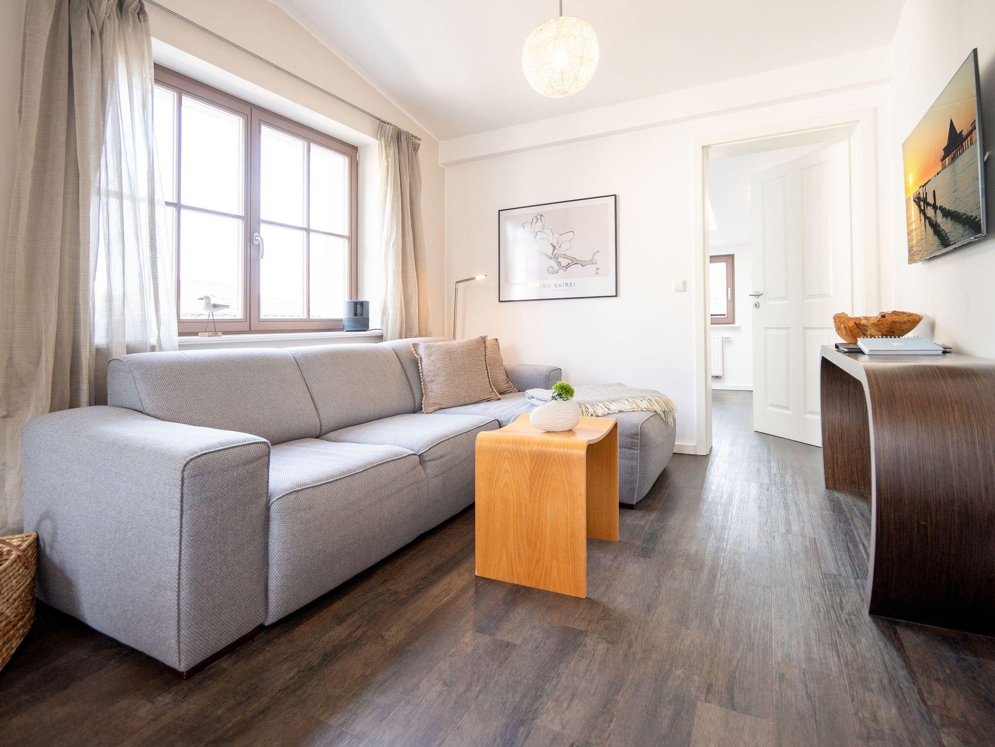 Im Dachgeschoss dieses charmanten Hauses erwartet Sie auf 61 qm eine modern gestaltete 3-Raum-Ferienwohnung, die Platz für bis zu 4 Personen bietet. Freuen Sie sich auf eine geschmackvolle Einrichtung und liebevoll ausgewählte Details, die Ihrem Aufenthalt das gewisse Etwas verleihen. Der Wohnbereich lädt mit einer gemütlichen Couch, einem Flat-TV und einem eleganten Gas-Designkamin, der bequem per Fernbedienung gesteuert werden kann, zum Entspannen ein. Gleich daneben finden Sie die offen gestaltete, voll ausgestattete Küche sowie einen einladenden Essbereich. Von hier aus gelangen Sie direkt auf den Südbalkon perfekt, um die Sonne zu genießen oder den Tag bei einem Glas Wein ausklingen zu lassen. Zwei Schlafzimmer mit komfortablen Boxspringdoppelbetten bieten erholsame Nächte. Das moderne Badezimmer mit Dusche rundet das Angebot ab. Für zusätzlichen Komfort sind die Betten bei Anreise für Sie bezogen und Handtücher liegen bereit. Ein eigener Pkw-Stellplatz direkt am Haus ist selbstverständlich inklusive. Auf Wunsch stellen wir Ihnen gerne ein Kinderreisebett (ohne Matratze und Bettzeug) sowie einen Hochstuhl gegen einen kleinen Aufpreis zur Verfügung. Das kostenfreie WLAN sorgt dafür, dass Sie jederzeit online bleiben können. Genießen Sie Ihren Aufenthalt wir freuen uns auf Sie!