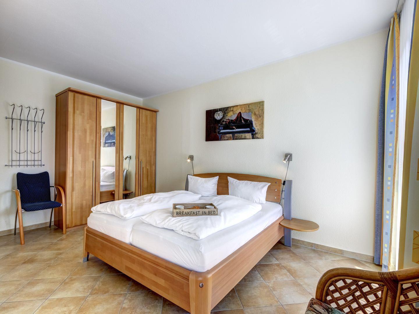 Das separate Schlafzimmer ist mit einem komfortablen Doppelbett ausgestattet und sorgt für erholsame Nächte.