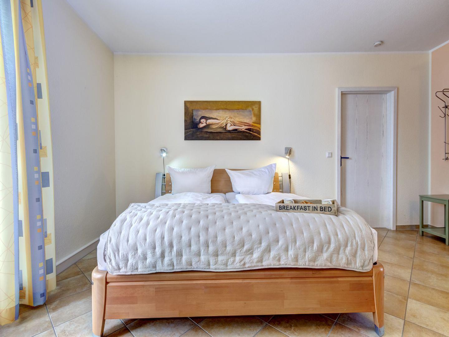 Das separate Schlafzimmer ist mit einem komfortablen Doppelbett ausgestattet und sorgt für erholsame Nächte.