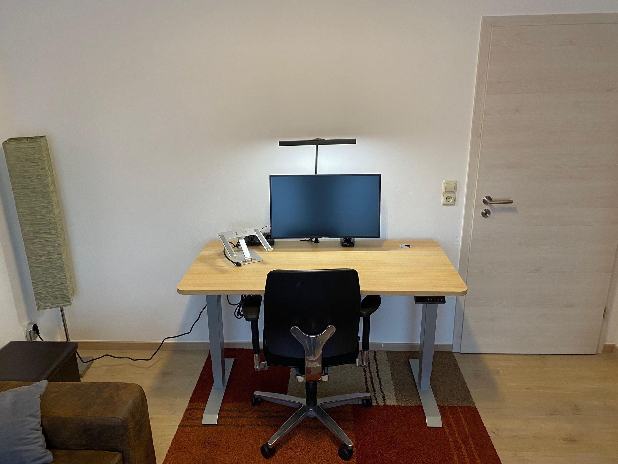 Unsere ruhig gelegenen Komfort-Zimmer bieten Ihnen ein modernes und stilvolles Ambiente zum Wohlfühlen. Die 2-Raum-Wohnung ist hochwertig ausgestattet und verbinden durchdachten Komfort mit zeitgemäßem Design. Zur Einrichtung gehören ein bequemes Bett und ein Kleiderschrank, ebenso wie ein höhenverstellbarer Schreibtisch mit einem 27-Zoll-Monitor – ideal für entspanntes Arbeiten oder Surfen im Netz.