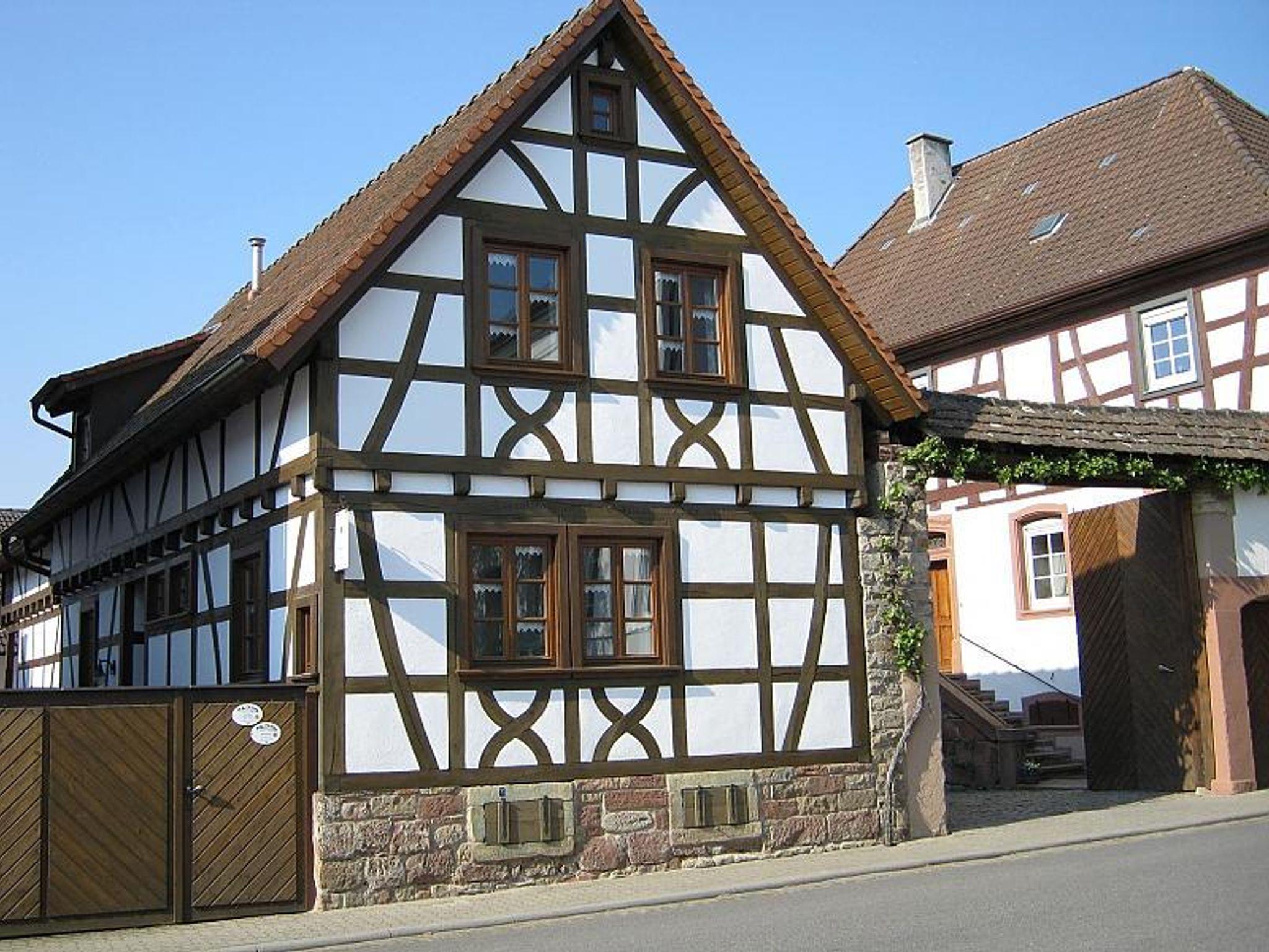 Unser Fachwerkhaus des ehemaligen Gutsanwesens mit den beiden neu renovierten Ferienwohnungen befindet sich im Ortskern des Weinortes Heuchelheim. Die Ferienwohnung Fuchsbau befindet sich im Erdgeschoss, das Atzelnest liegt darüber. Beide Wohnungen haben einen Balkon und liegen im hinteren und somit ruhigeren Teil des Hauses.Gegenüber den Wohnungen liegt jeweils ein weiteres Doppelzimmer mit einem separaten Bad, das bei Bedarf mitgenutzt werden kann.