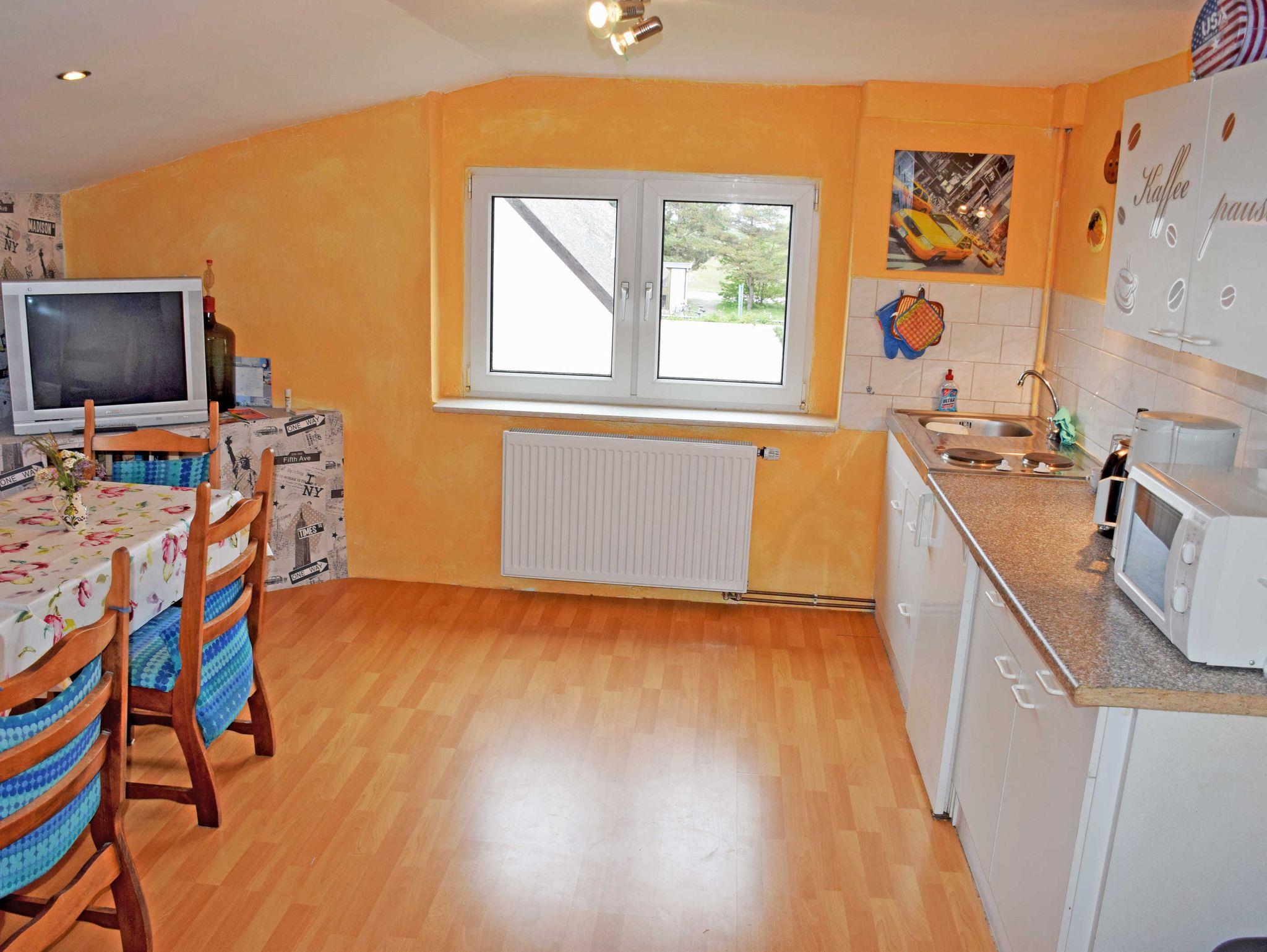 Die Ferienzimmer befinden sind im Dachgeschoss. Jedes der gemütlichen Zimmer verfügt über einen kombinierten Wohn- und Schlafbereich sowie einer Waschgelegenheit im Zimmer. Die großzügige Gemeinschaftsküche bietet viel Platz für Mahlzeiten, Spaß und Spiel. Die Küche ist mit Herd, Mikrowelle, Kühlschrank, Spühle, Geschirr, Töpfe, Toaster, Kaffeemaschine, Wasserkocher, TV und Radio ausgestattet. Weiterhin befinden sich auf dem Flur eine WC sowie eine Dusche mit Waschgelegenheit zu gemeinsamen Nutzung für beide Ferienzimmer.